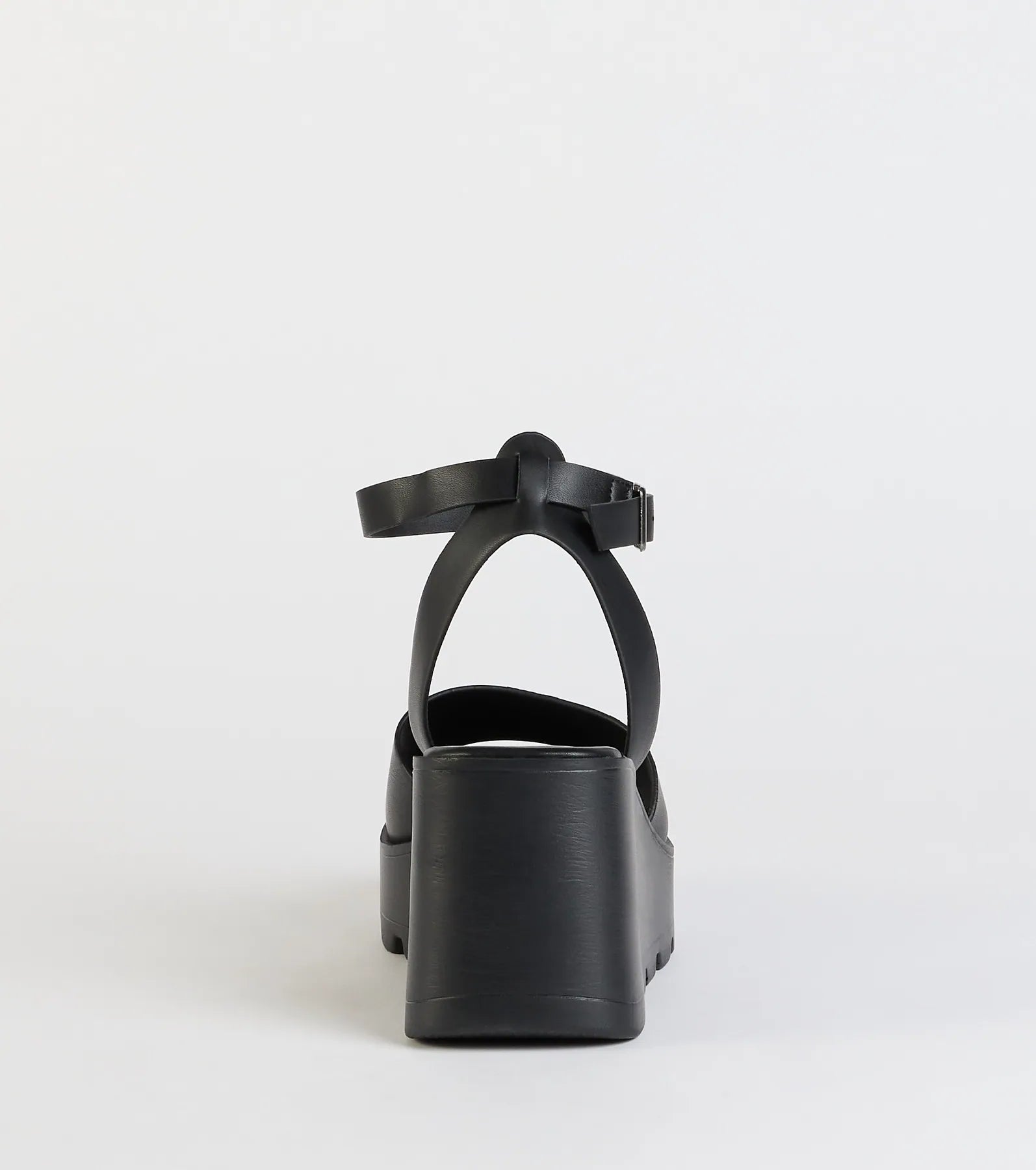 Your wish for a cute 90s look has come true with these faux leather platform wedges perfect for everyday styling.