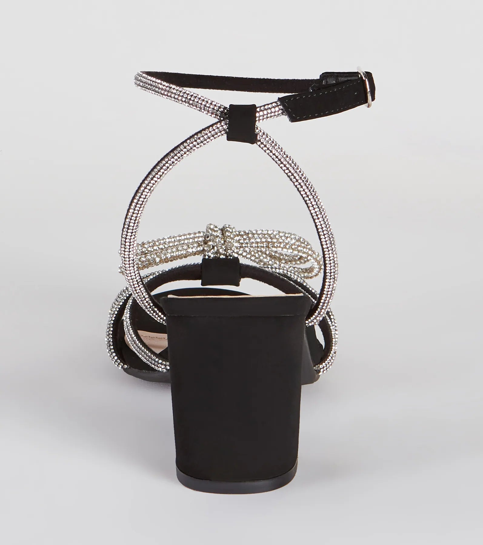 With these sparkling rhinestone bow low-block heels. it’s all about that glitz and glamour! They feature an open almond toe. a thin strappy design across the foot with mini rhinestone embellishments and a chic rhinestone bow accent. adjustable ankle and heel straps with matching rhinestones. and a low block heel for comfortable wear. Style with and a sleek clutch!