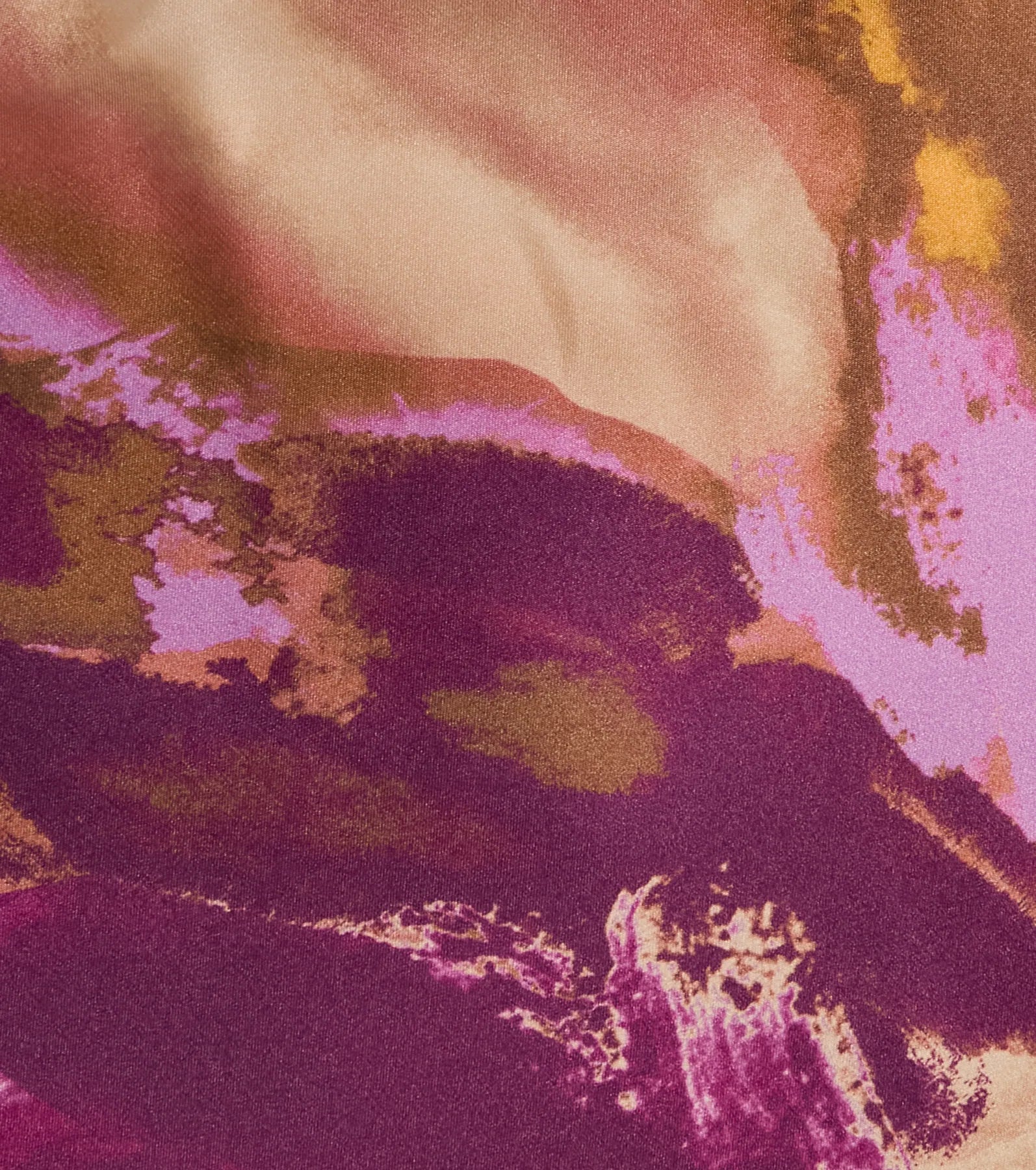 Your aesthetic will always impress in this tie-dye satin midi dress perfect for sunset cocktails on vacation or at a rooftop bar! Made from a silky satin fabric with a beautiful tie-dye print. this dress brings a unique style. It features a cowl neckline. adjustable spaghetti straps that crisscross in the back. and a form-hugging midi silhouette. Complete the look in .
