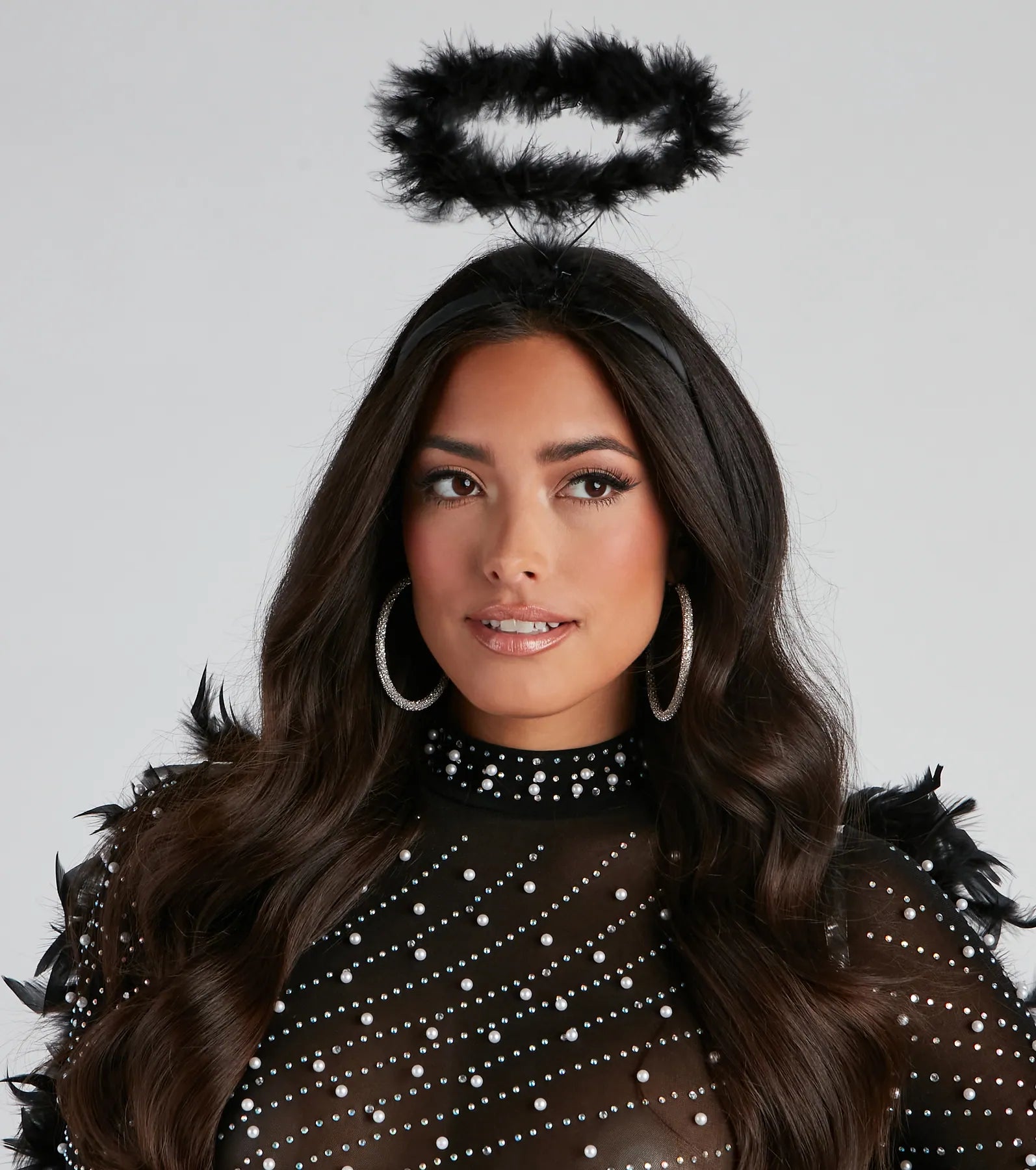 Style up your stunning sweet angel or daring dark angel costume with this must-have halo headband! It featuresĀ a thin headband design with a wired halo with feathered detailing. Available in both black and white. complete the look with dramatic feathered wings and this Halloween!