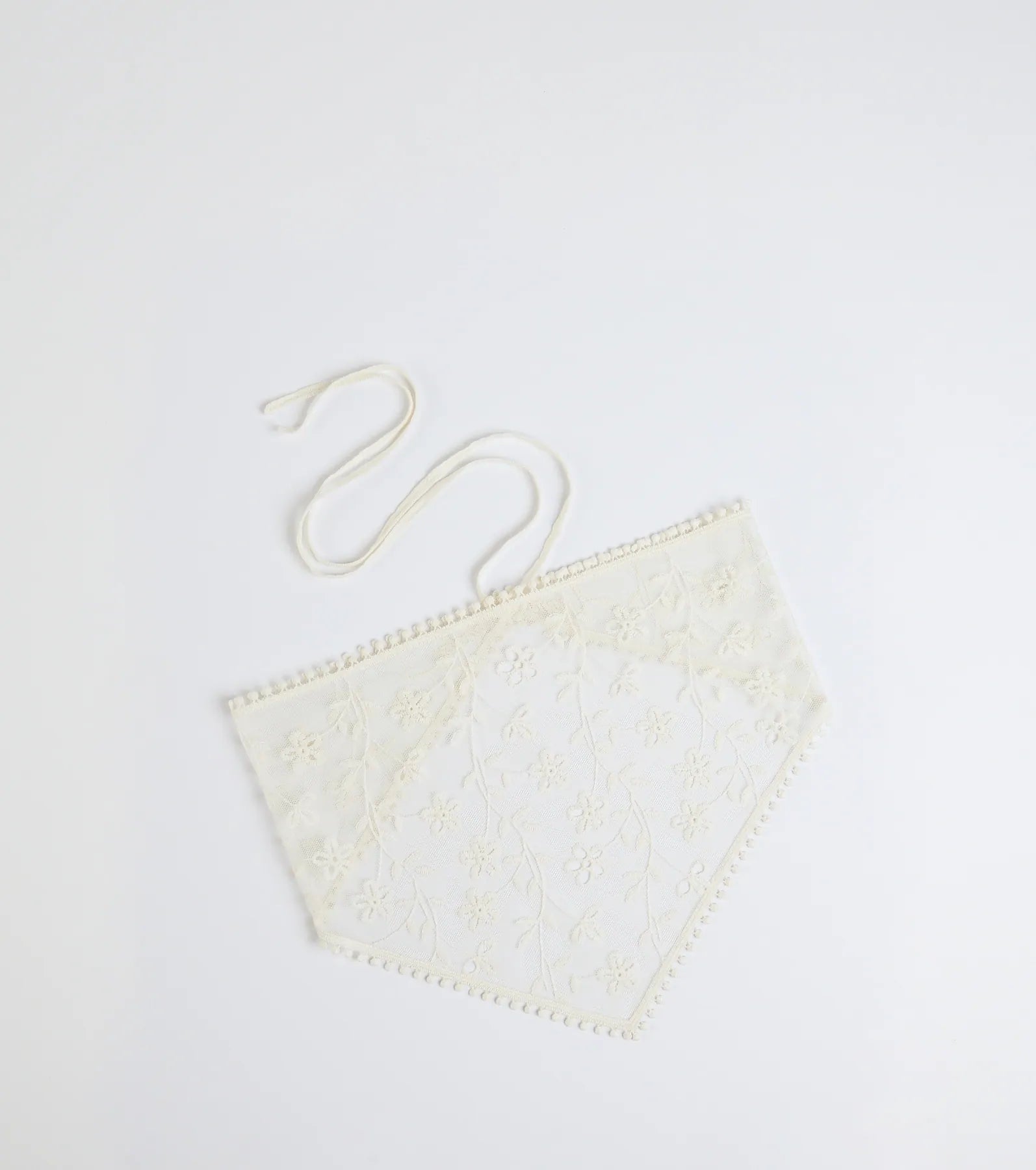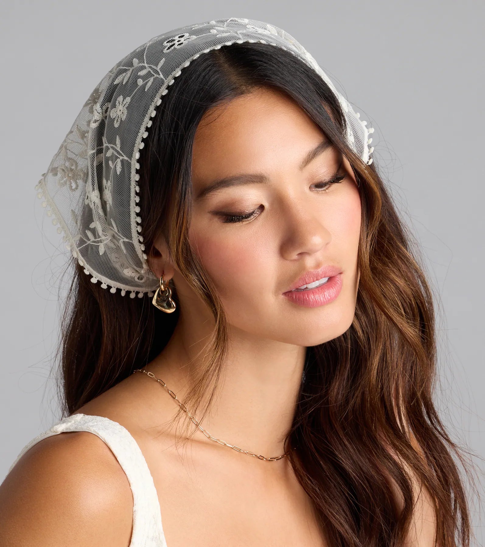 Unveil a cute boho vibe with this sheer floral bandana perfect for an everyday look or a festival!