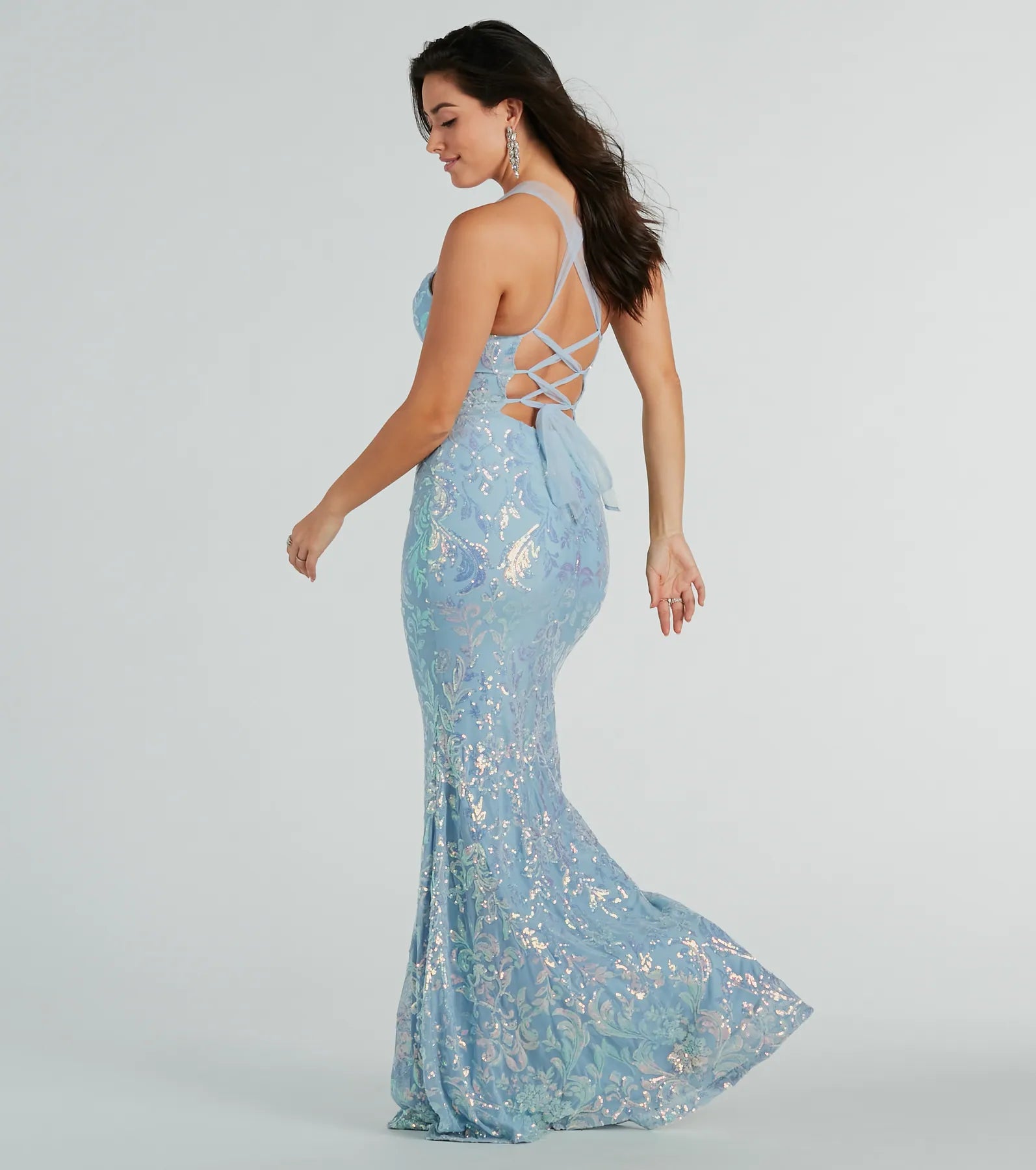 Brooklyn Bustier Tulle Lace-Up Sequin Formal Dress