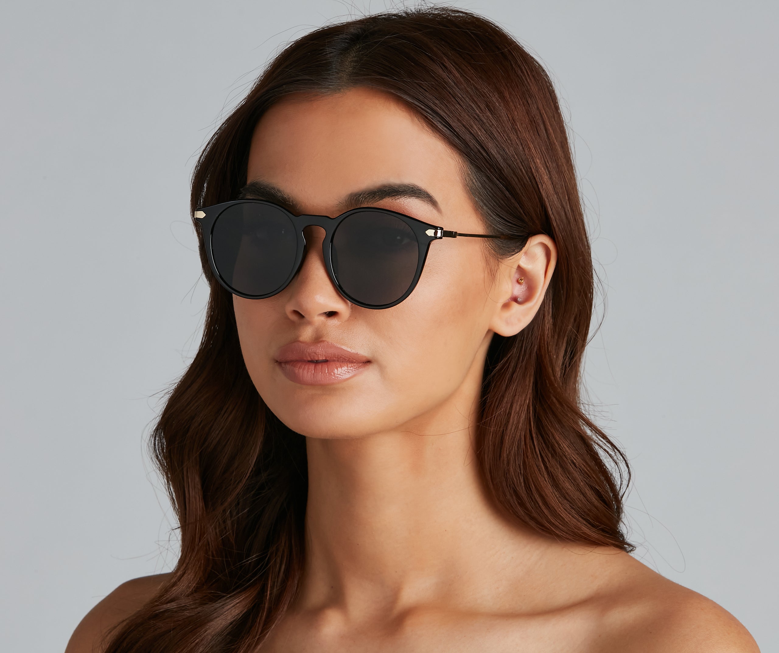 Bring that chic and stylish attitude with these adorable sunnies! They feature round tinted lenses with a plastic frame and sleek gold-hued arms. Style these sunglasses with your fave .