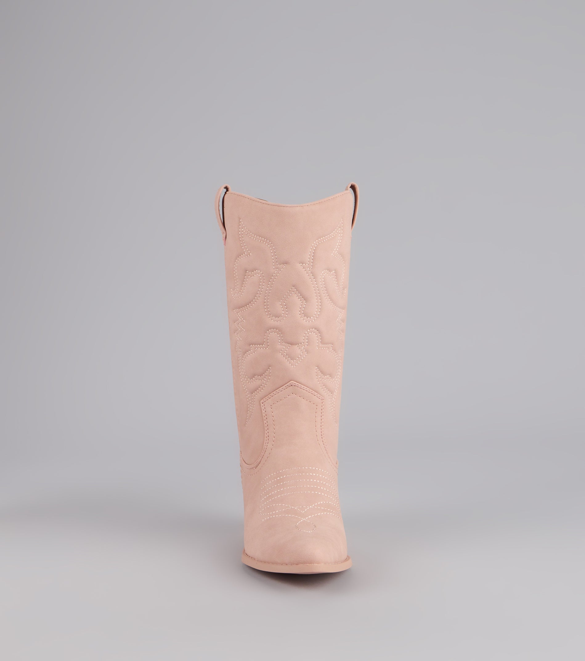 Cowgirl but make it chic—these western boots add instant attitude to any fit. With classic stitching and a pointed toe. they’re perfect for concerts. country nights. or just serving rodeo-ready style on the daily.
