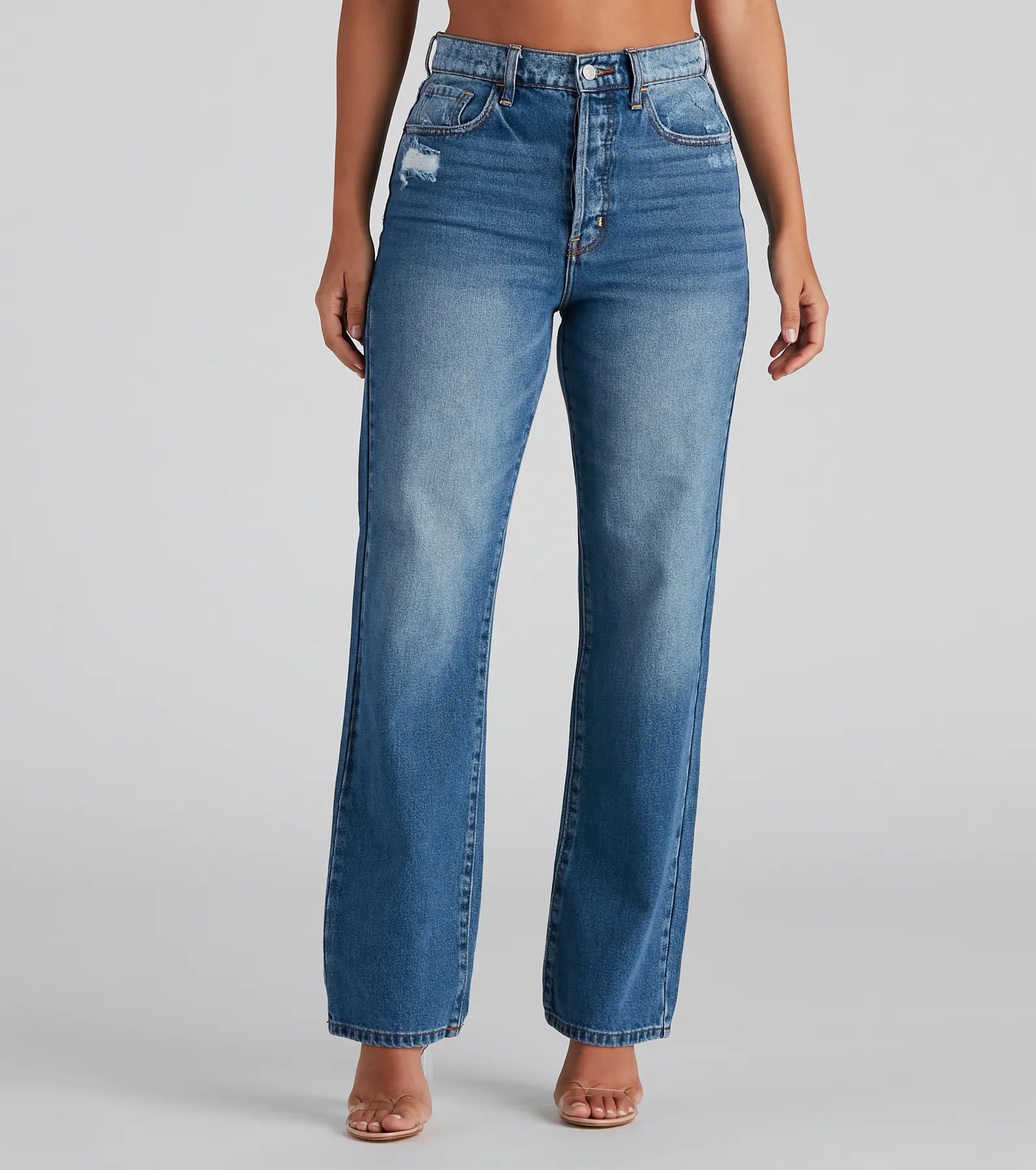 Channel a classic look with jeans that are perf to dress down for a casual look! The jeans feature a high-rise waist. a multi-button front. a traditional five-pocket with belt loop design. light destruction. and a boyfriend leg. Complete look with a and chunky sneakers.