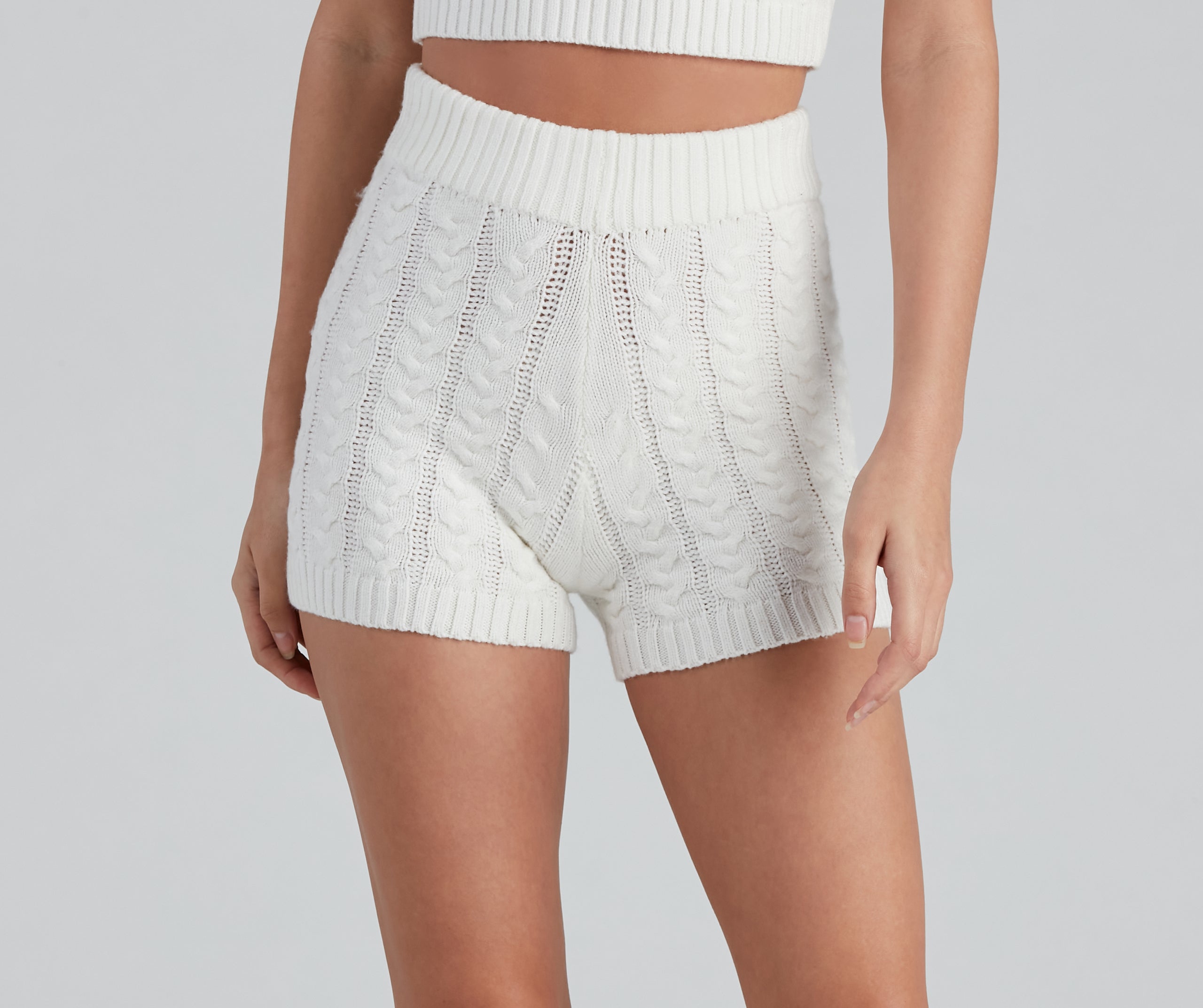 Cuddle up in these absolutely adorable pajama shorts! They feature a high-rise waist. a cable knit design. and a form-hugging fit. Complete your cozy look with the matching pajama tank.