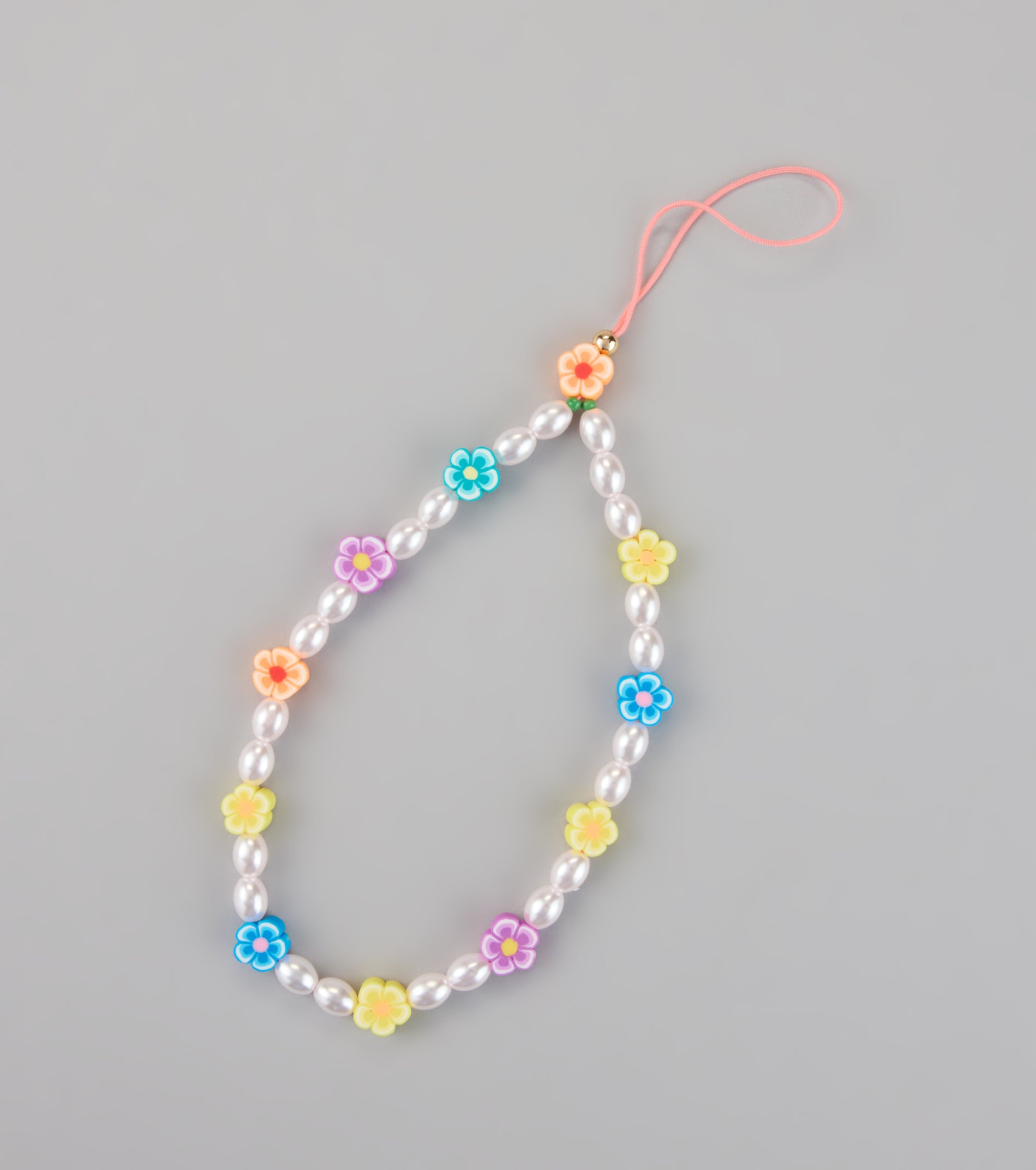 A little joy you can carry everywhere. This flower faux pearl wristlet keychain brings playful charm to your essentials—perfect for looping around your wrist or clipping onto your favorite bag for a cute pop of color.