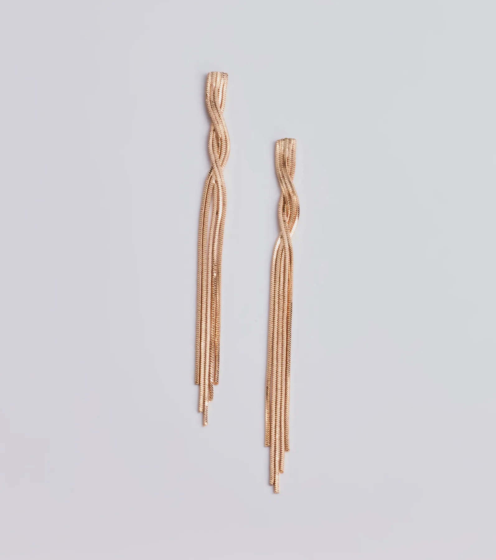 Dazzle in these glam twisted fringe earrings perfect for complimenting your formal dress.