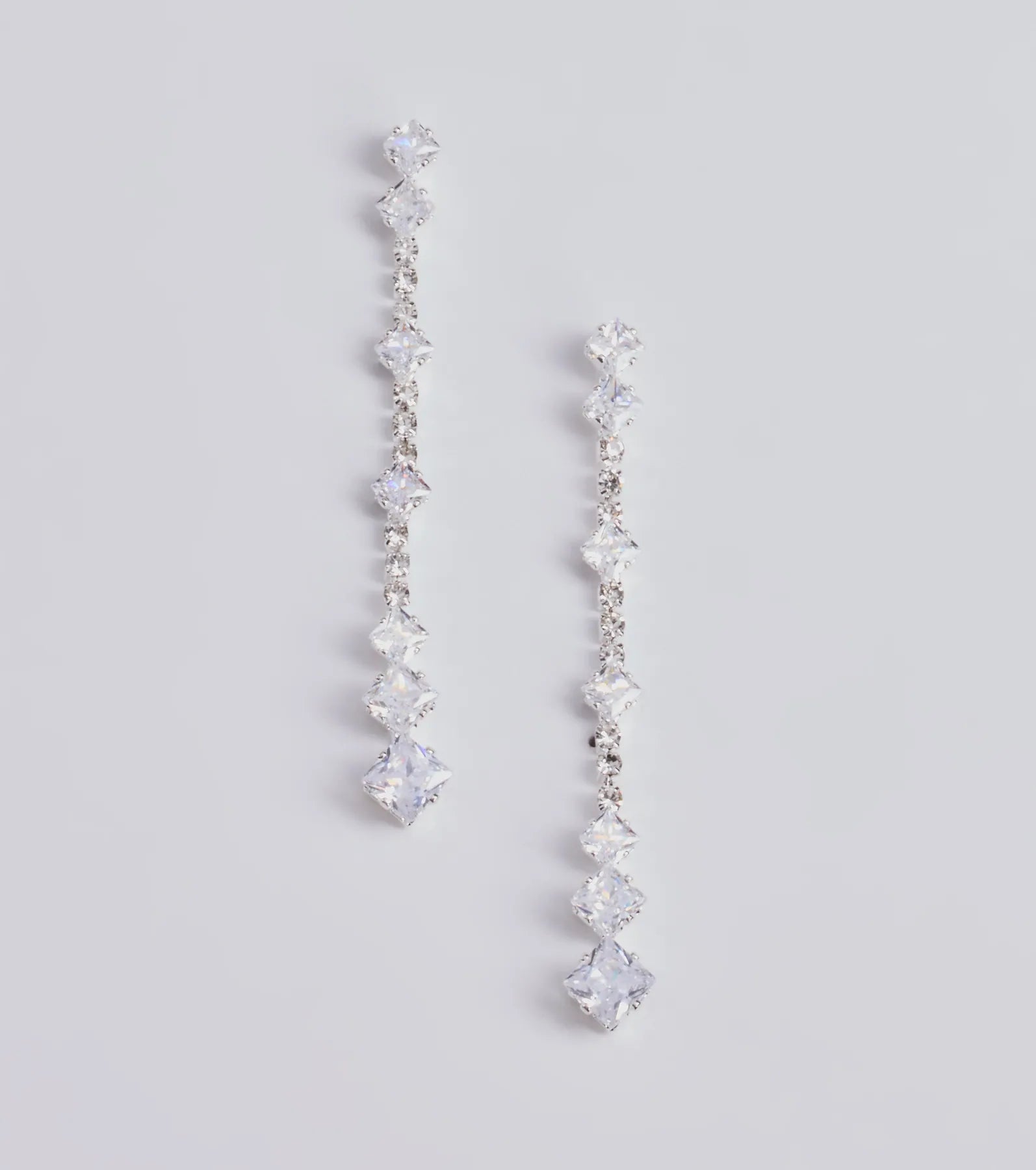 Create dazzling vibes with this rhinestone linear drop earrings secured with a post-back closure. Pair with a velvet formal dress.