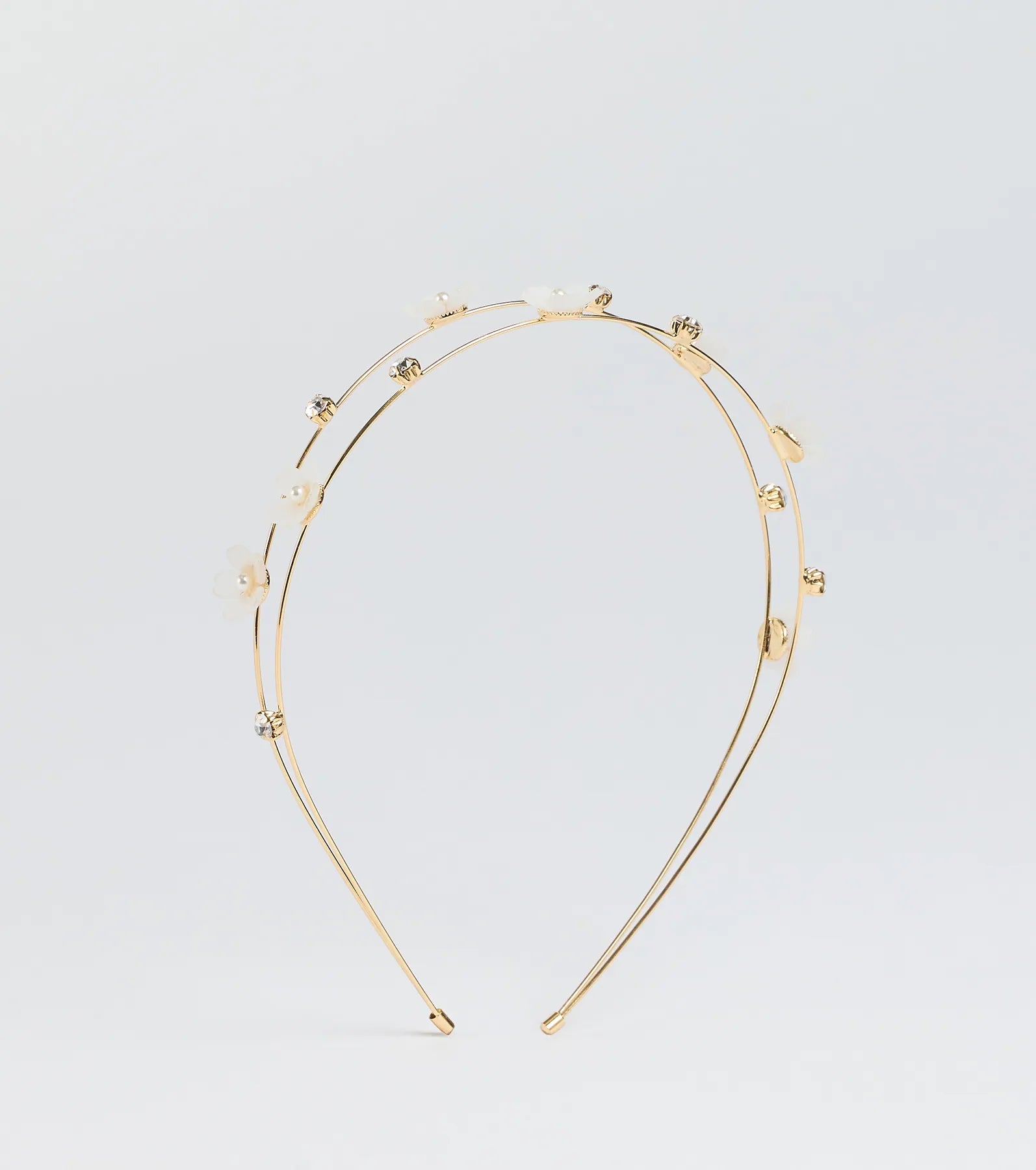 Radiate ethereal glamour with this dainty headband featuring faux pearl flower accents and sparkling rhinestone embellishments.