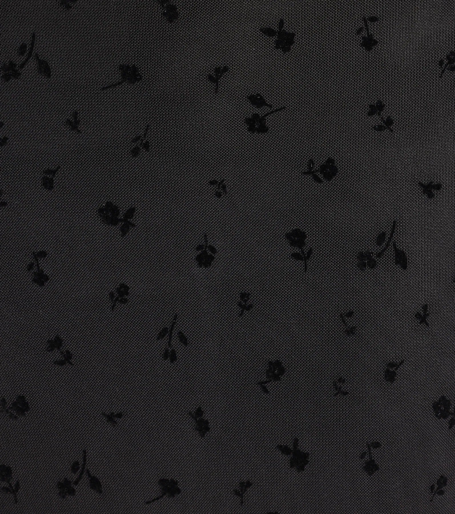 - Flocked floral pattern. mesh fabric lined with stretchy knit