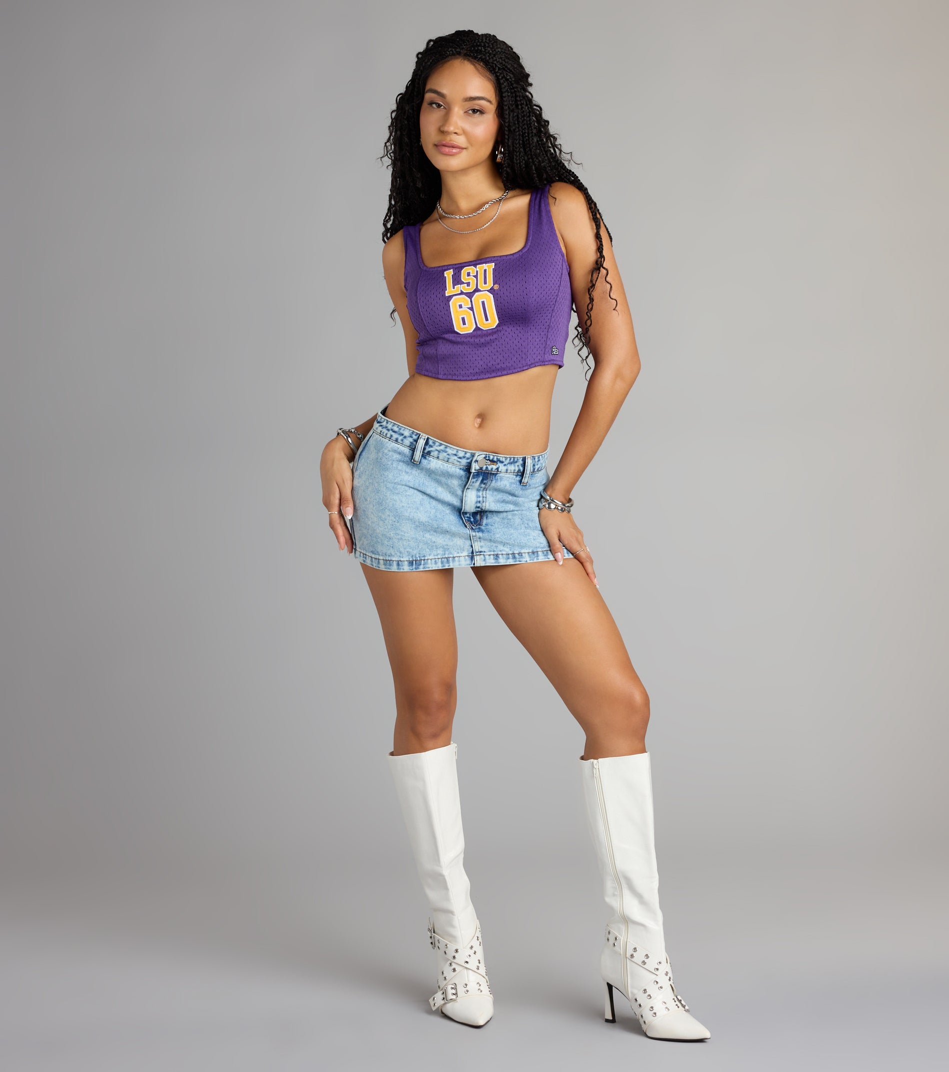 She’s giving sideline siren with a lil scoreboard slay. This LSU® corset crop top serves varsity vibes with cool-girl confidence—perfect for tailgates. content moments. or taking over campus.