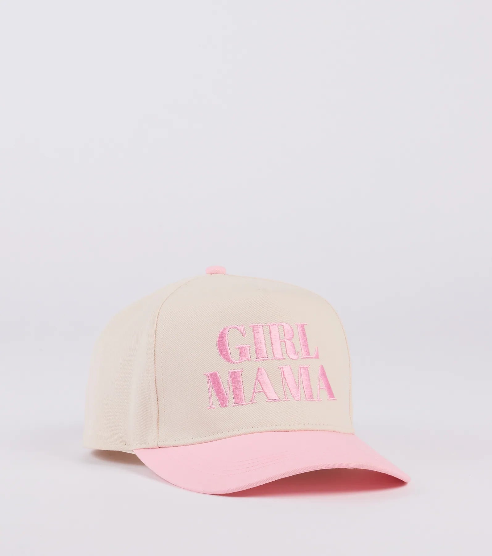 Show off your proud mom status in this trendy two-tone baseball cap with front embroidery reading Girl Mama.