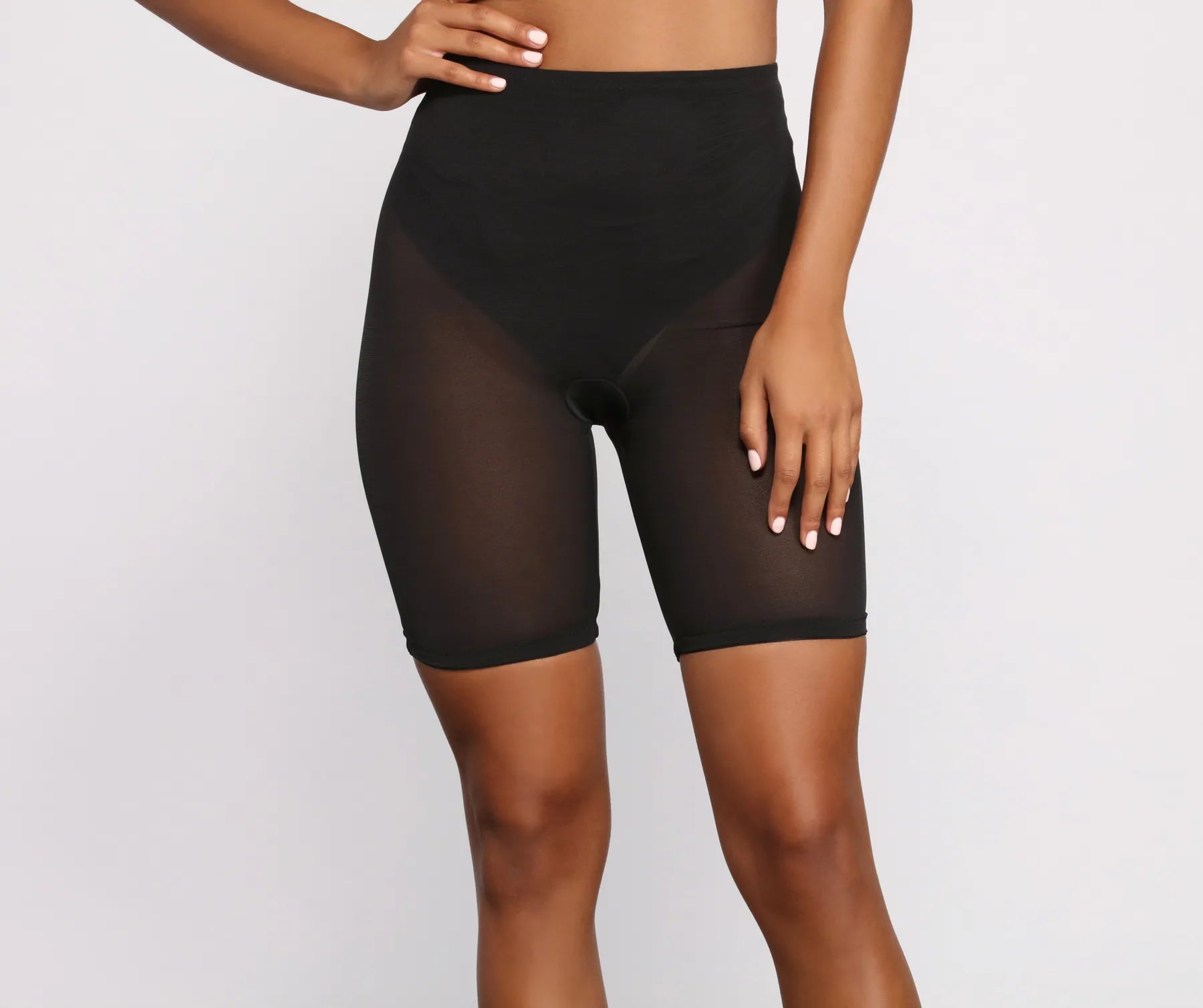 Get that sleek look with shapers that give you a sleek silhouette. The shapers feature a high rise waist. a mid-thigh length. cheeky lining. and composed of sheer nylon-like fabric. Complete your look with a?.?