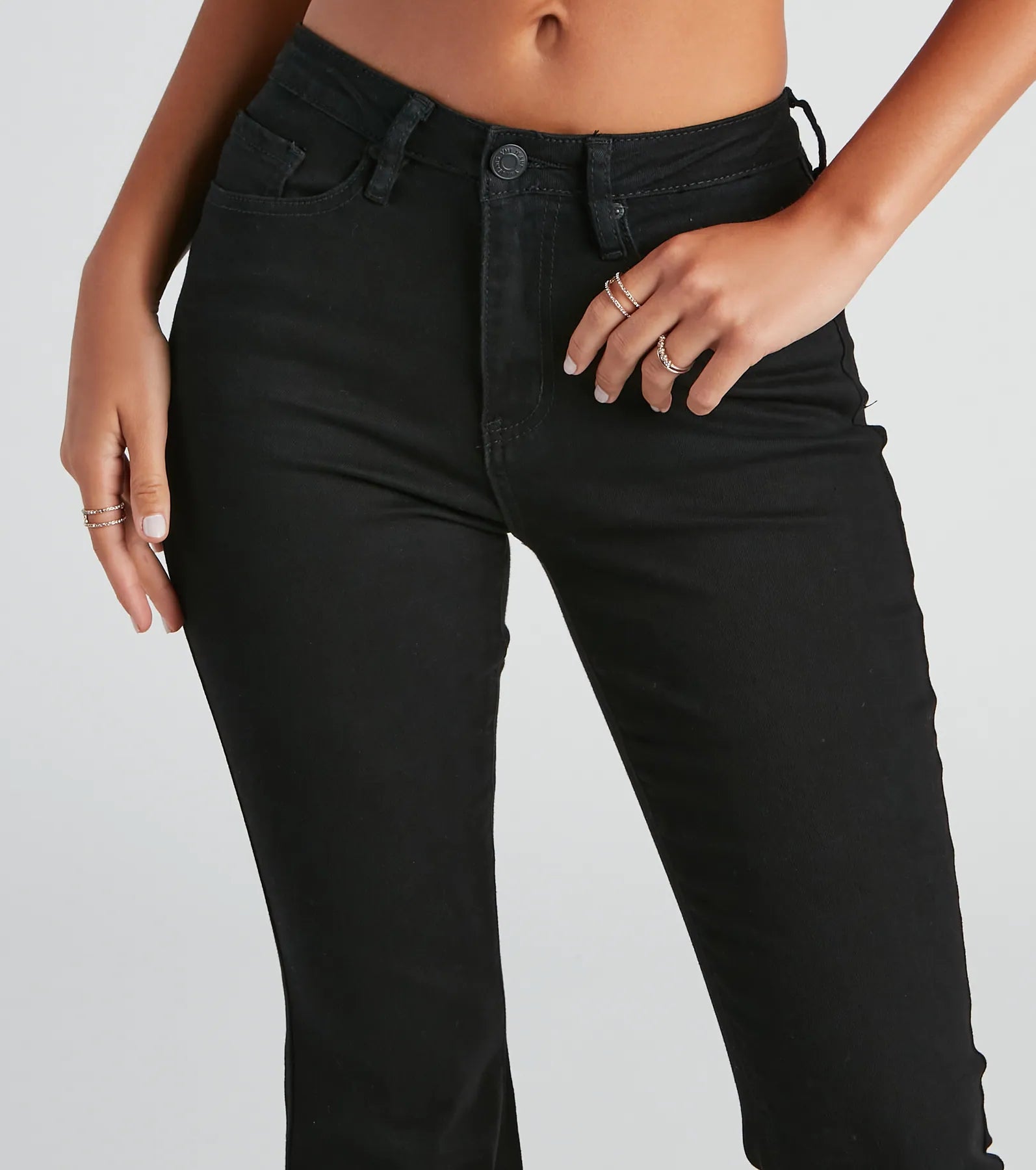 - Mid-rise waist