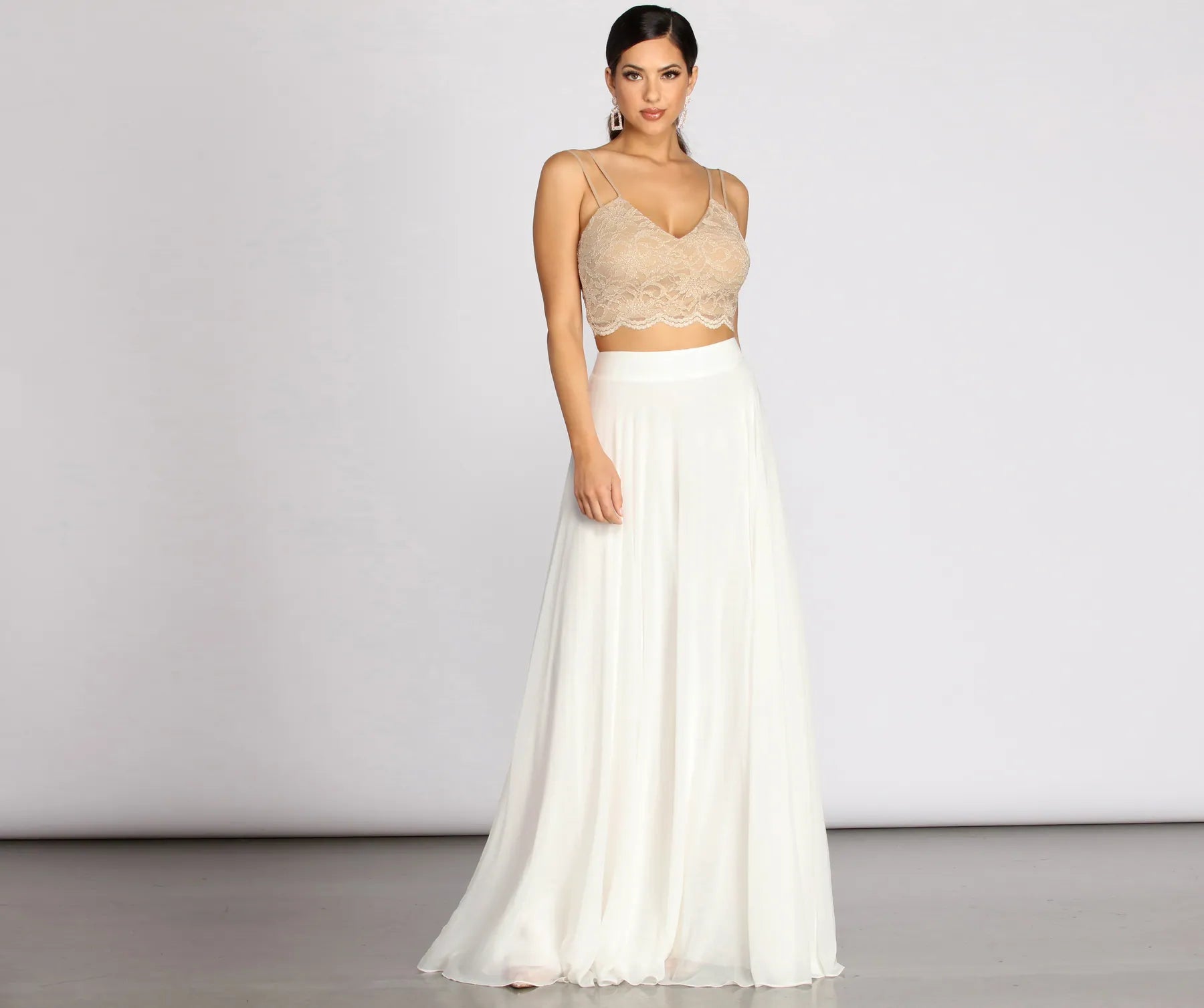 Magnolia Two Piece Scallop Lace Glitter A-Line Dress