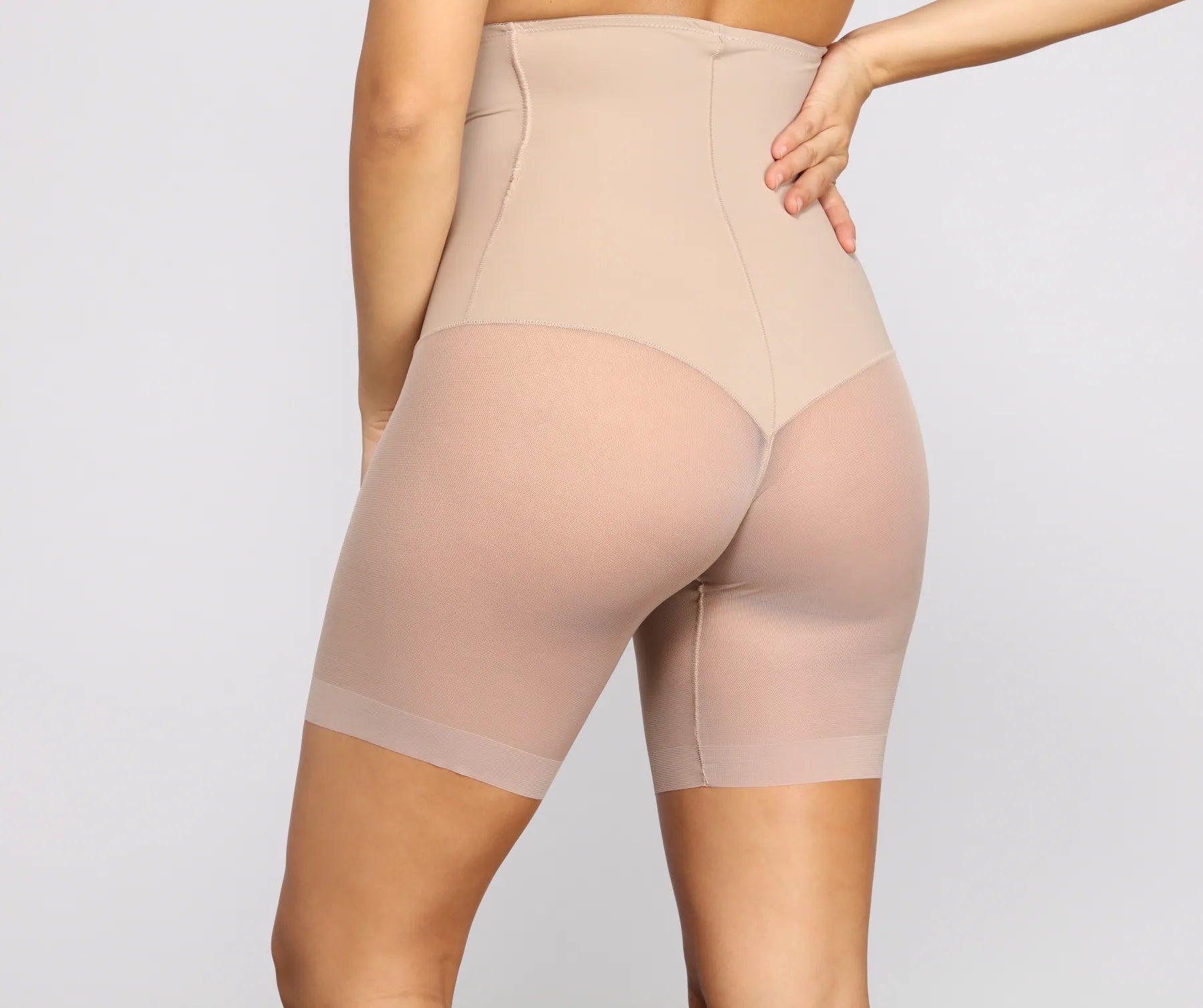 Create a seamless look with shaper shorts! Perfect for wearing underneath skirts to formal dresses. this shaper offers you a sleek effect and creates an hour-glass illusion for curves. The high waist shaper features a compression fit and a thong bottom. Complete your look with a and .