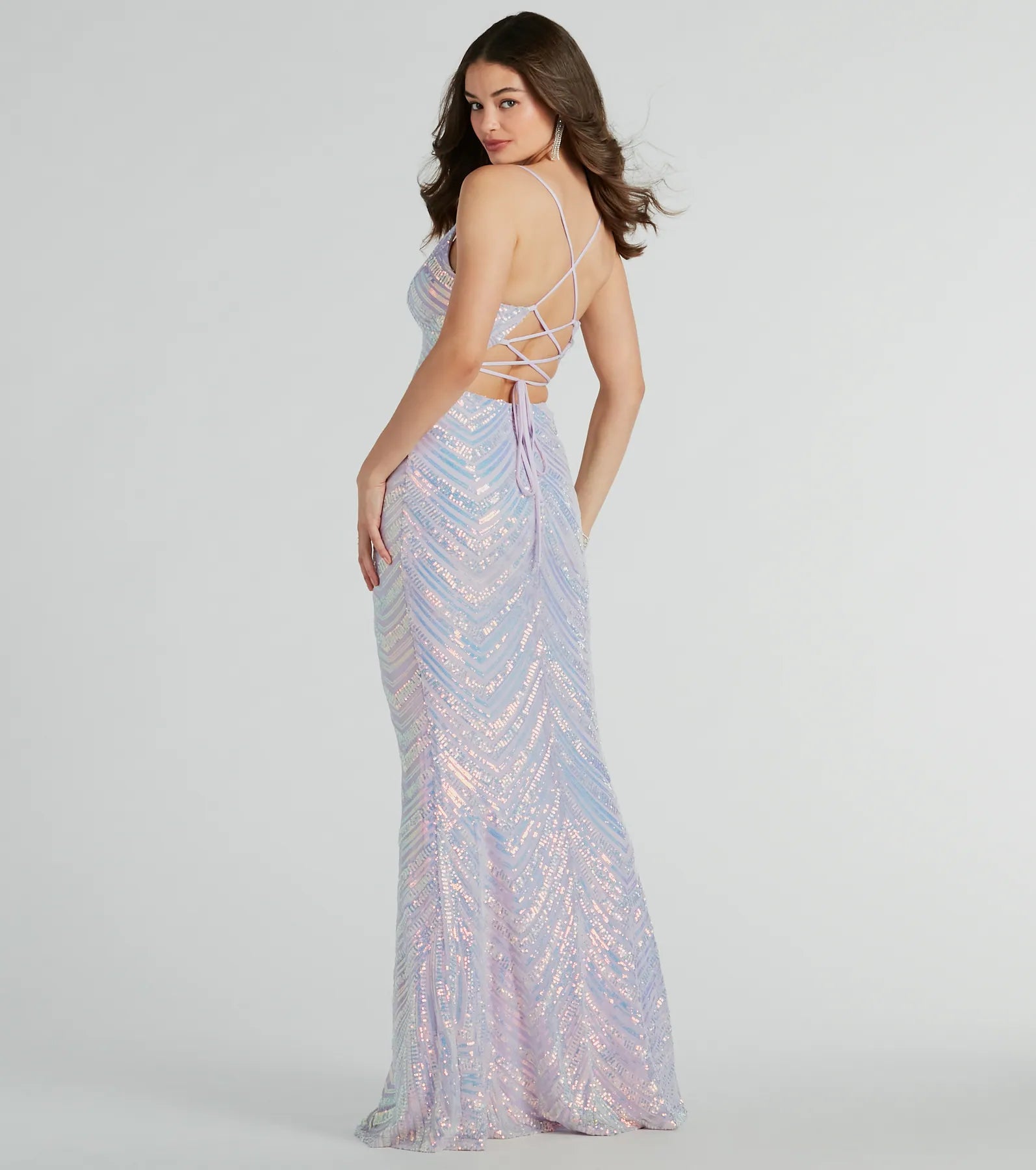 Shannon Lace-Up Sequin Mesh Mermaid Formal Dress