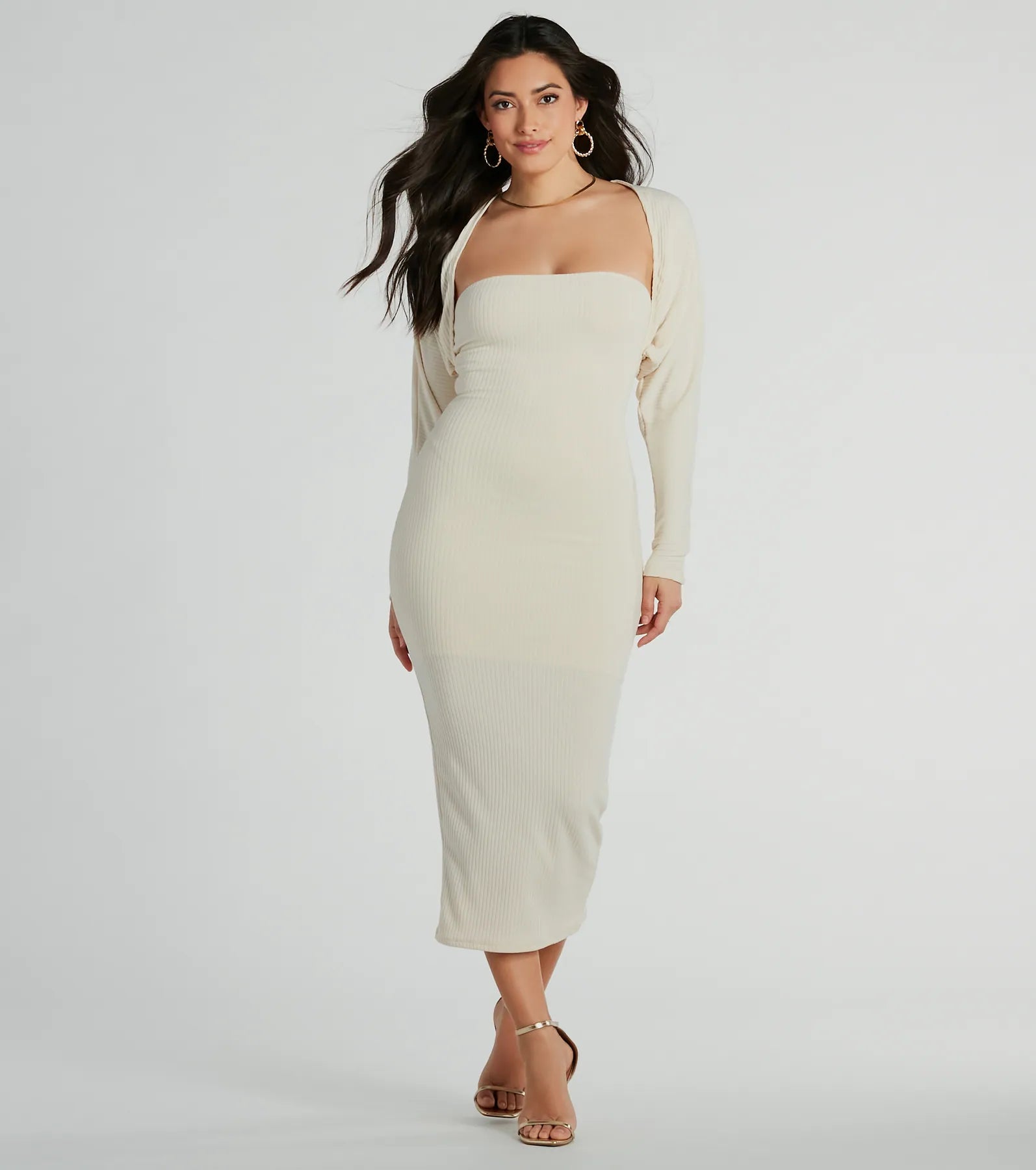 Flaunt your look with ease and chicness layering this bolero sweater this season! The bolero features slouchy long sleeves. an open front design. and an ultra-cropped hem on soft and stretchy rib knit fabric. Style with the matching dress and heels for weekend plans!