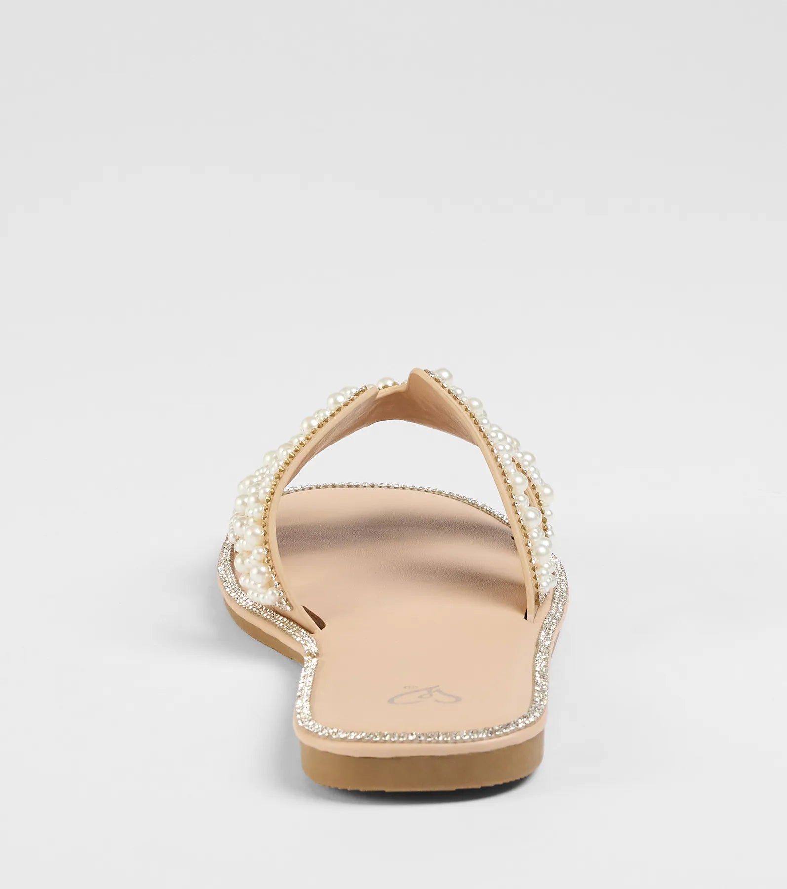 - Rhinestone embellished trim. flat sole