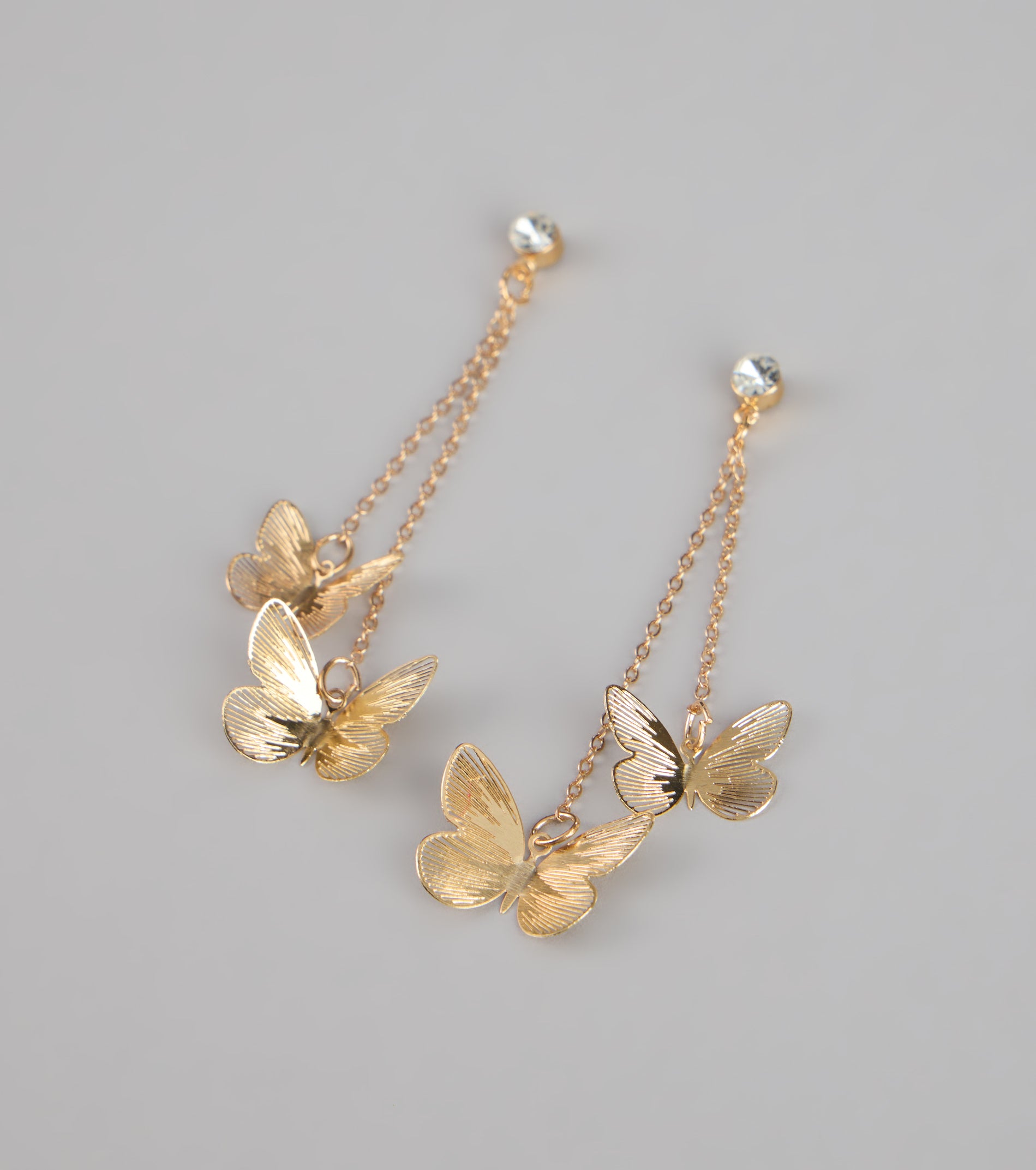 Soft shine. big impact. These butterfly linear earrings bring dreamy movement to every look—sweet with a hint of statement. perfect for dressing up your everyday vibe.