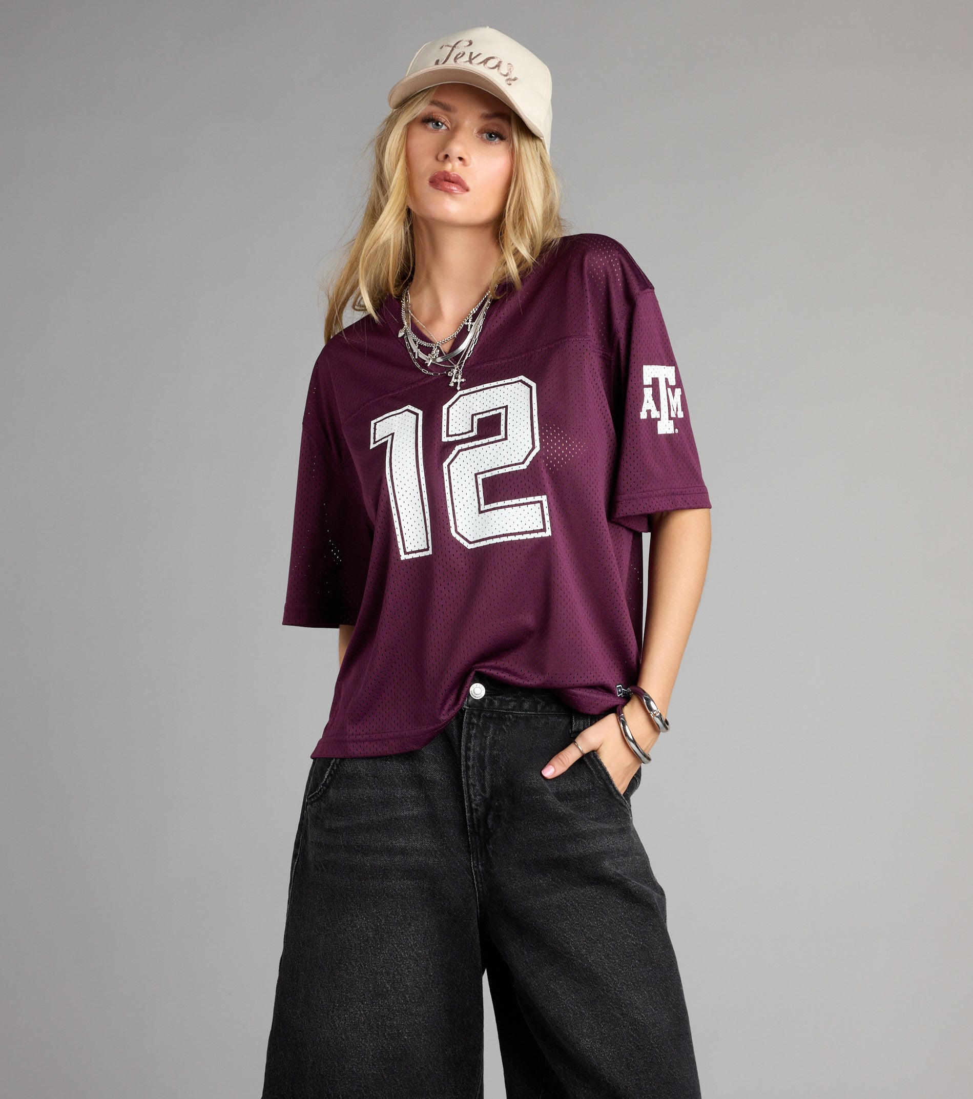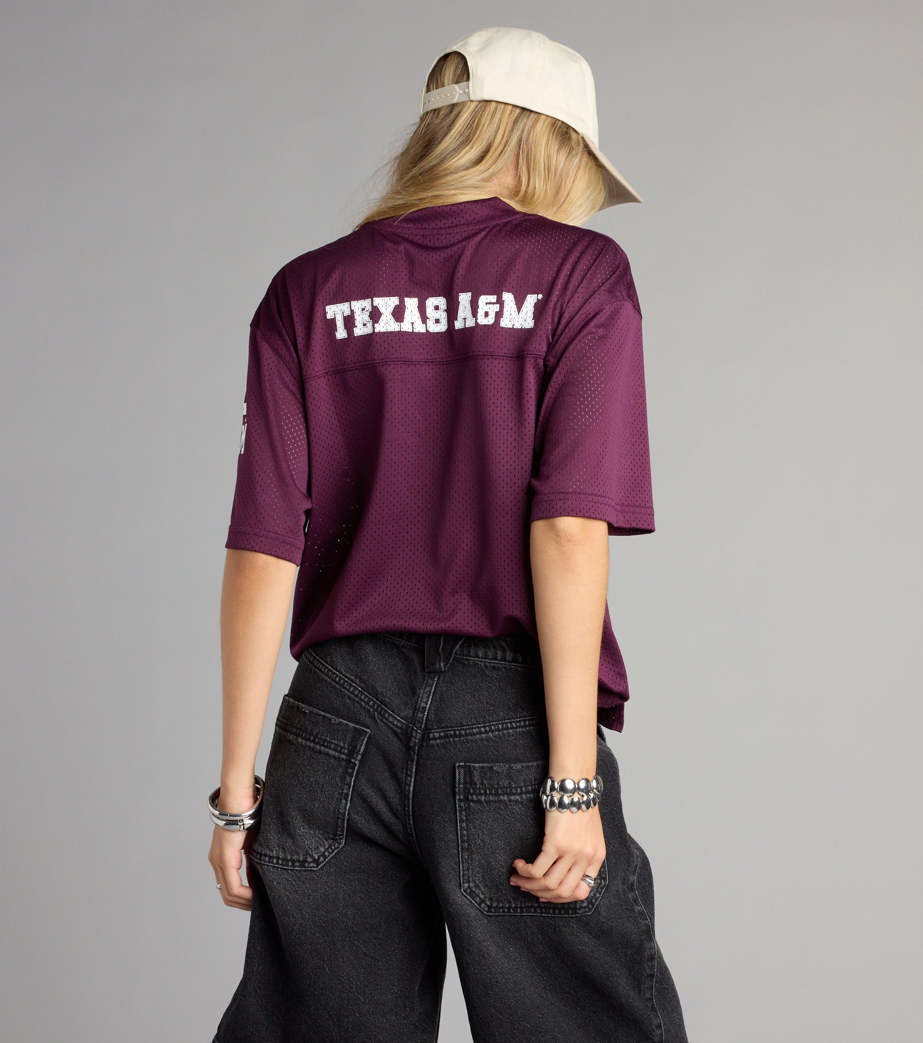 Repping Texas A&M® never looked this good. This cropped jersey top serves oversized comfort. sporty vibes. and a whole lot of confident energy for game day or any day.