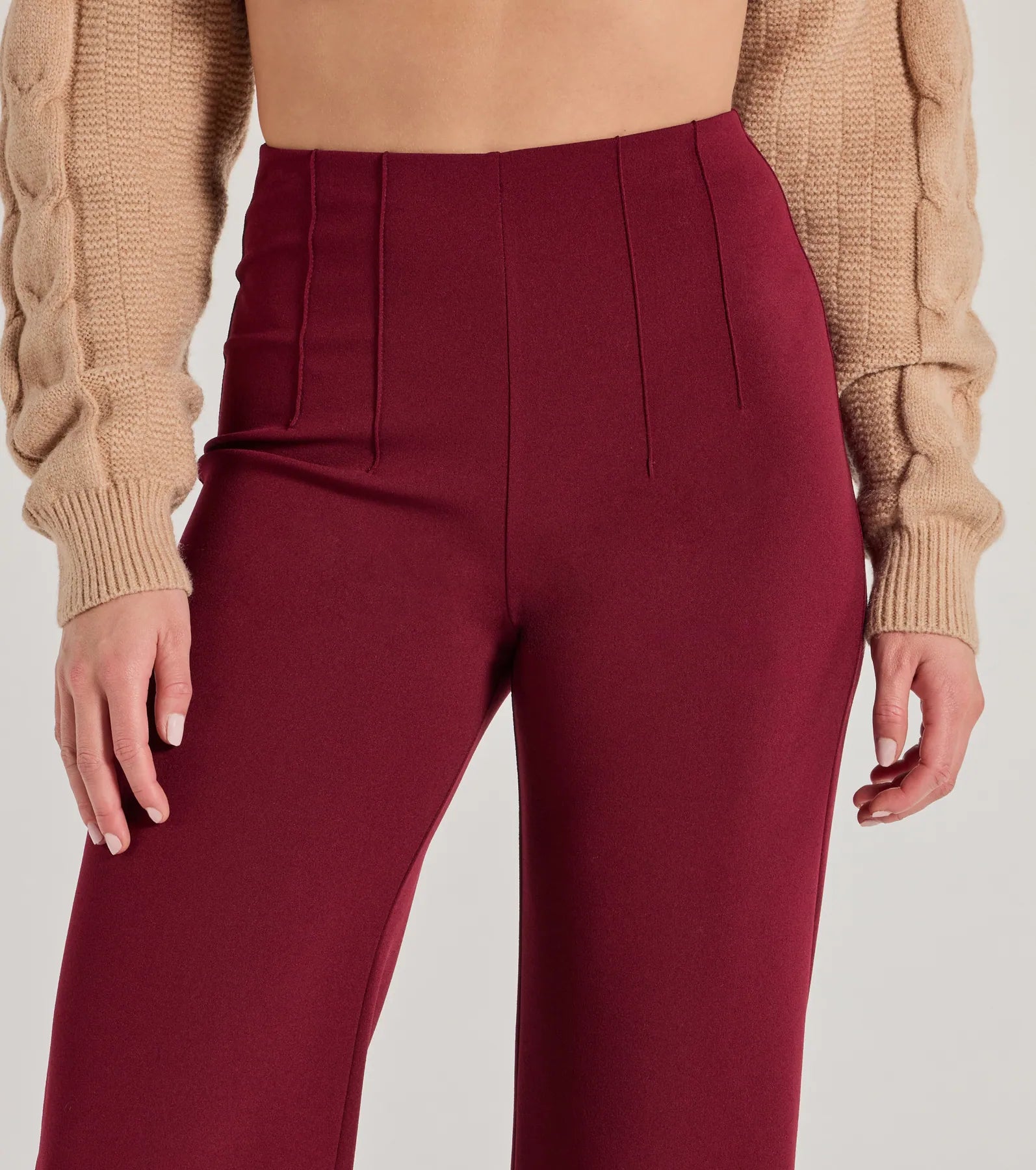 These high-rise ponte trouser pants give a stylish look to any workwear outfit. They feature a flattering high-rise waist and straight-leg fit perfect for styling with heels.?
