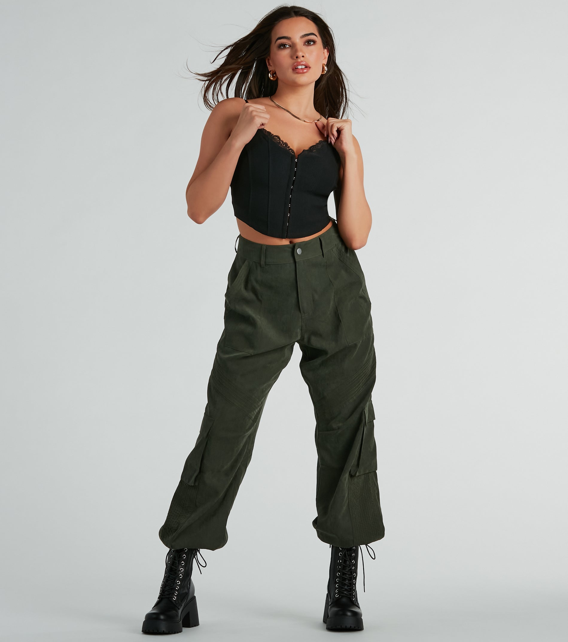 Turn heads in this sweet woven corset top for a stunning vibe with your favorite bottoms on casual dates or hangs with the girls! Crafted from smooth woven fabric. this corset crop top brings the flirt factor with a lace trim V-neckline. adjustable spaghetti straps. and hidden front hook and eye fasteners so you can get the perfect fit. Complete the look in . mules. and a purse.
