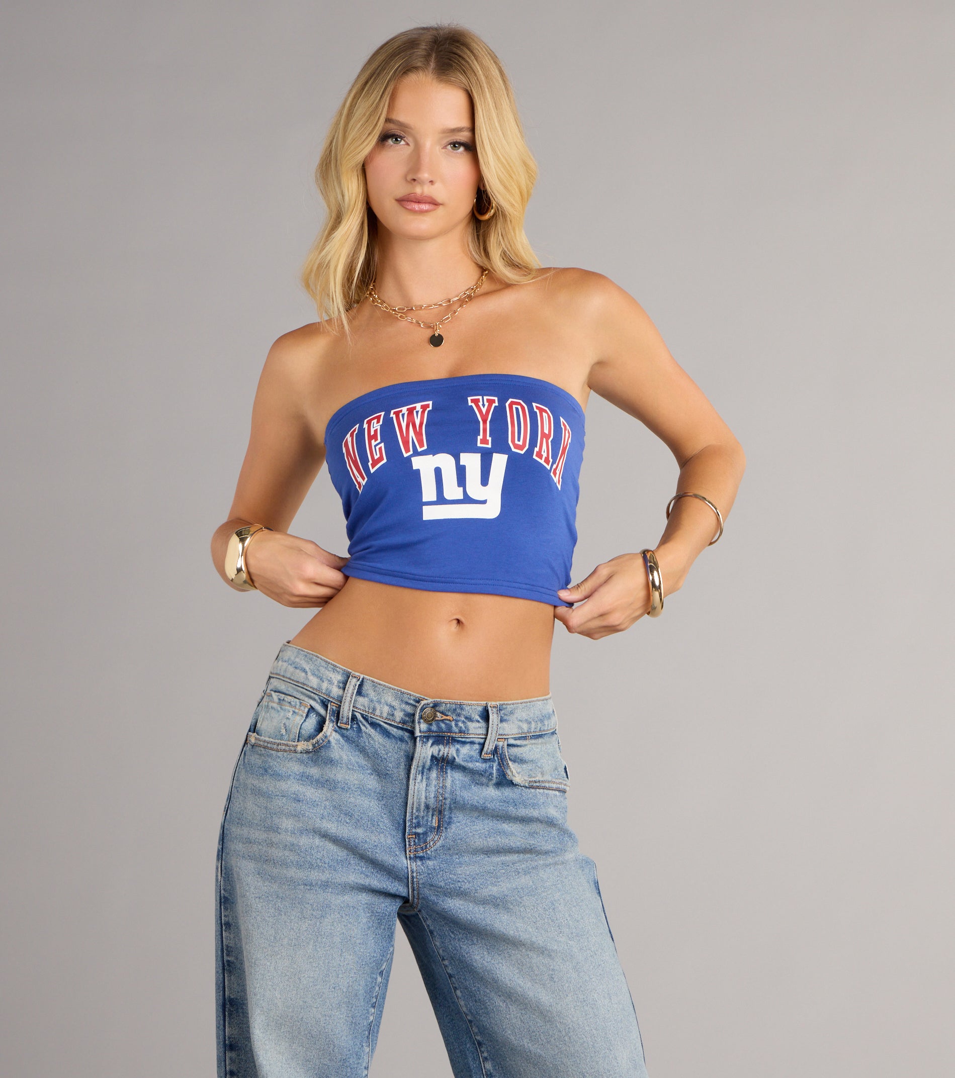Show off your team spirit with a flirty twist. This strapless New York Giants tube top hugs just right. making it perfect for kickoff. concerts. or your next weekend hang.