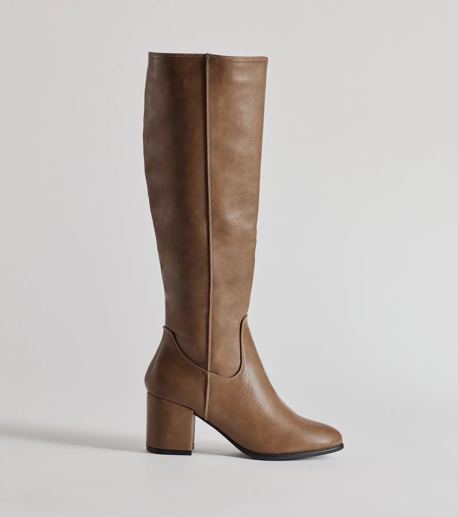 Take stylish struts uptown in these faux leather block heel boots that elevates every outfit!