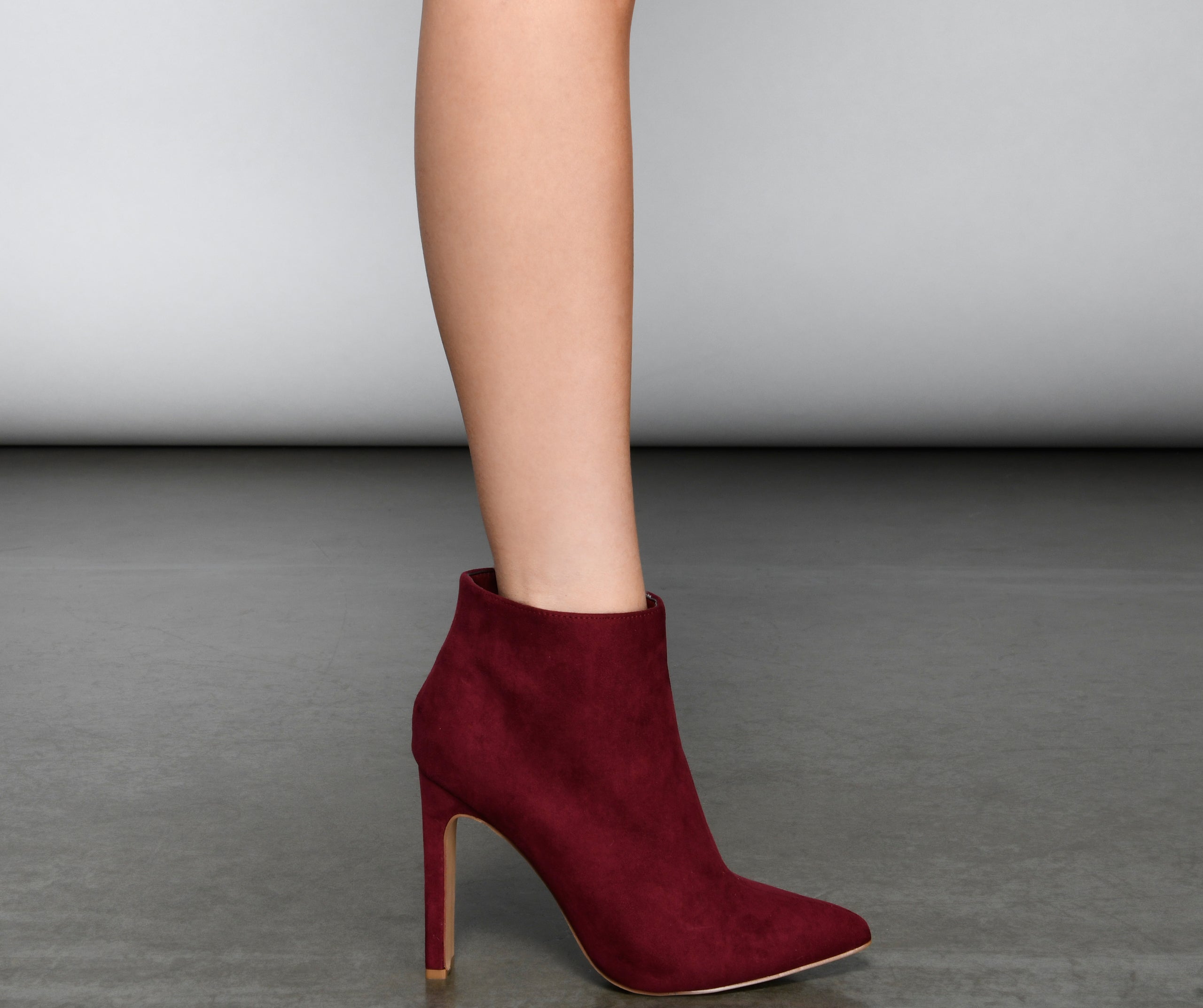 Live it up in the city wearing these faux suede pointed-toe booties! They feature a side zipper closure and a sturdy block heel. Style with a plaid and jeans.