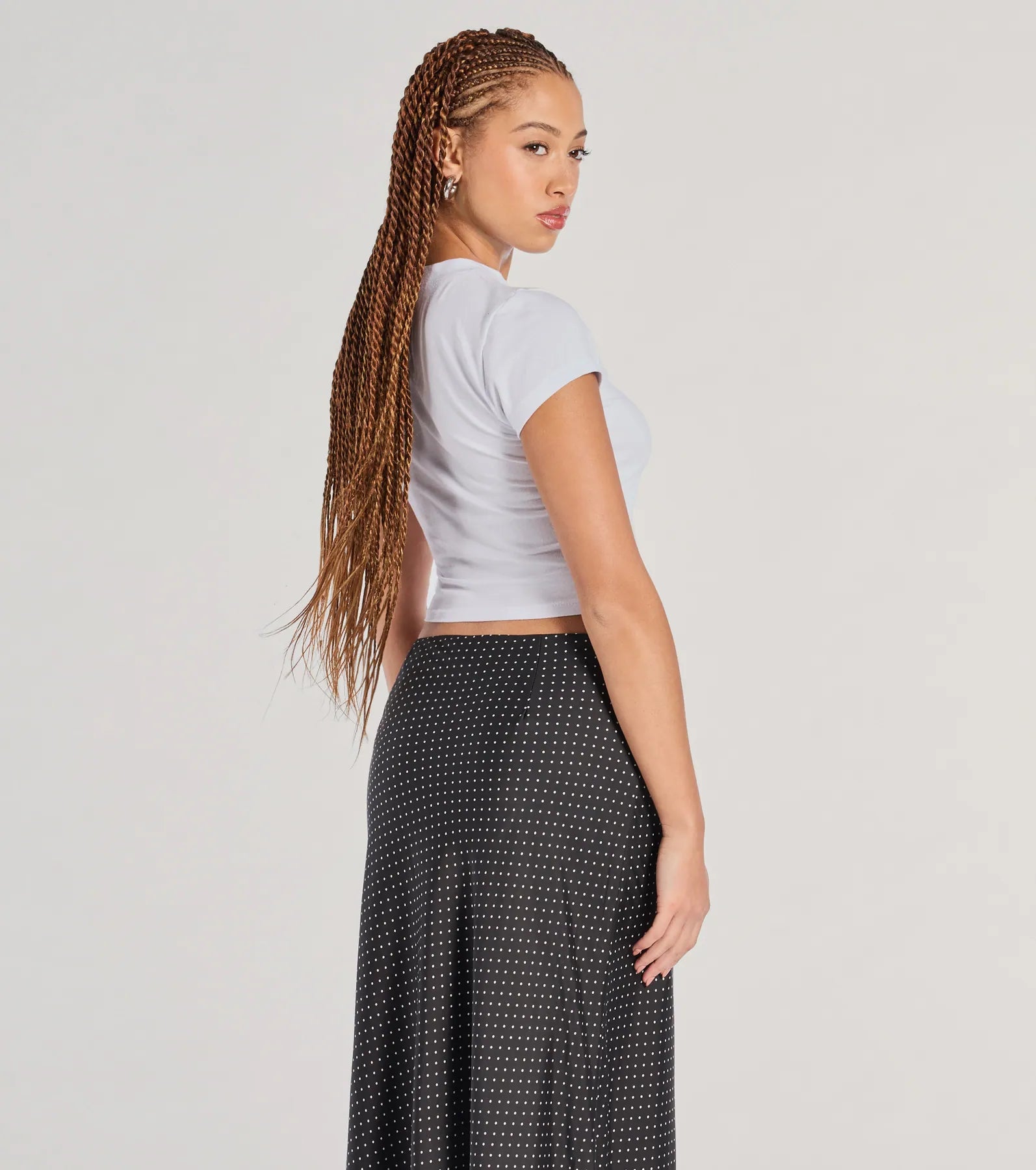 Show off your sassy side in this trendy graphic tee featuring a front script that reads. V is for vodka and a fitted crop hem perfect for styling with a high-rise skirt.