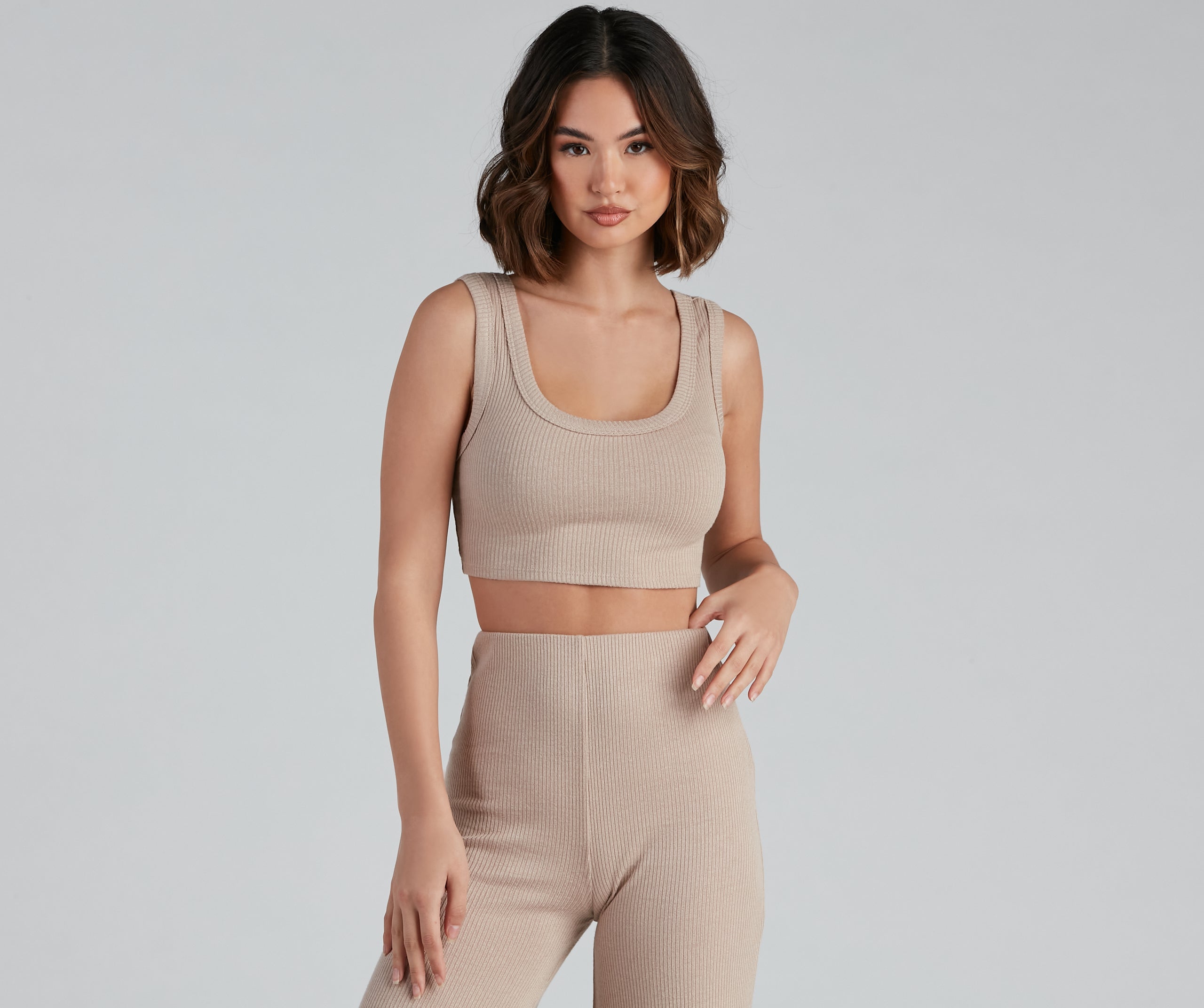 Your look this weekend is sure to include this pajama tank! It features a sleeveless. scoop neck and a cropped hem on soft. rib-knit fabric with a moderate stretch. Complete the look in the matching leggings.