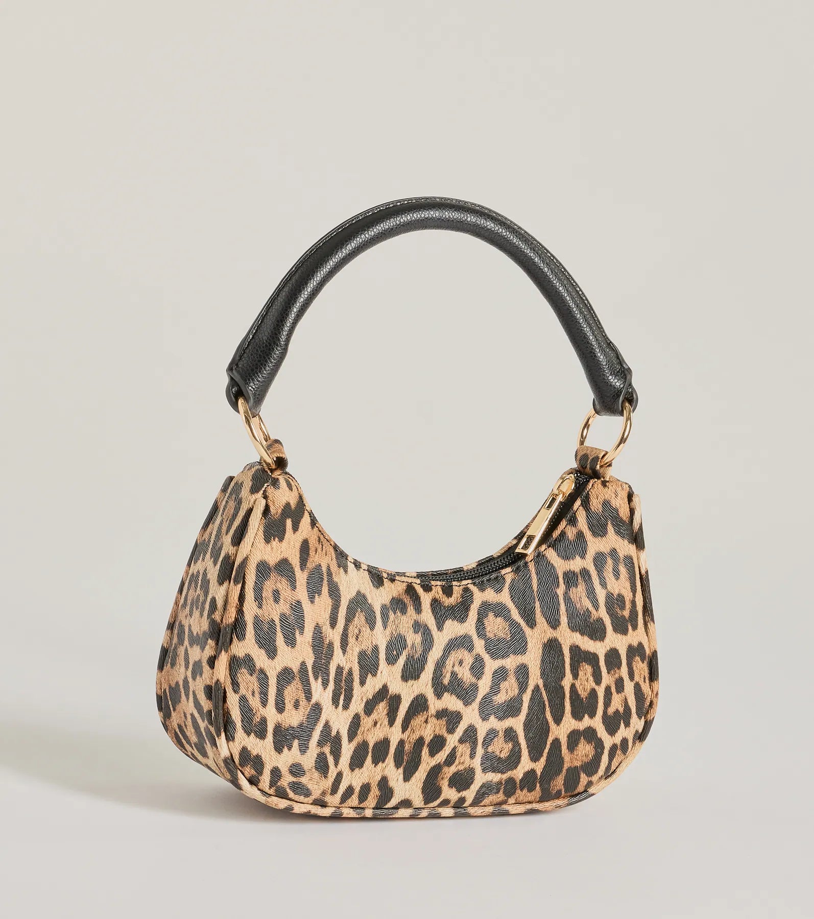 Dare to be bold carrying this leopard print handbag out and about! Style with a faux leather jacket.