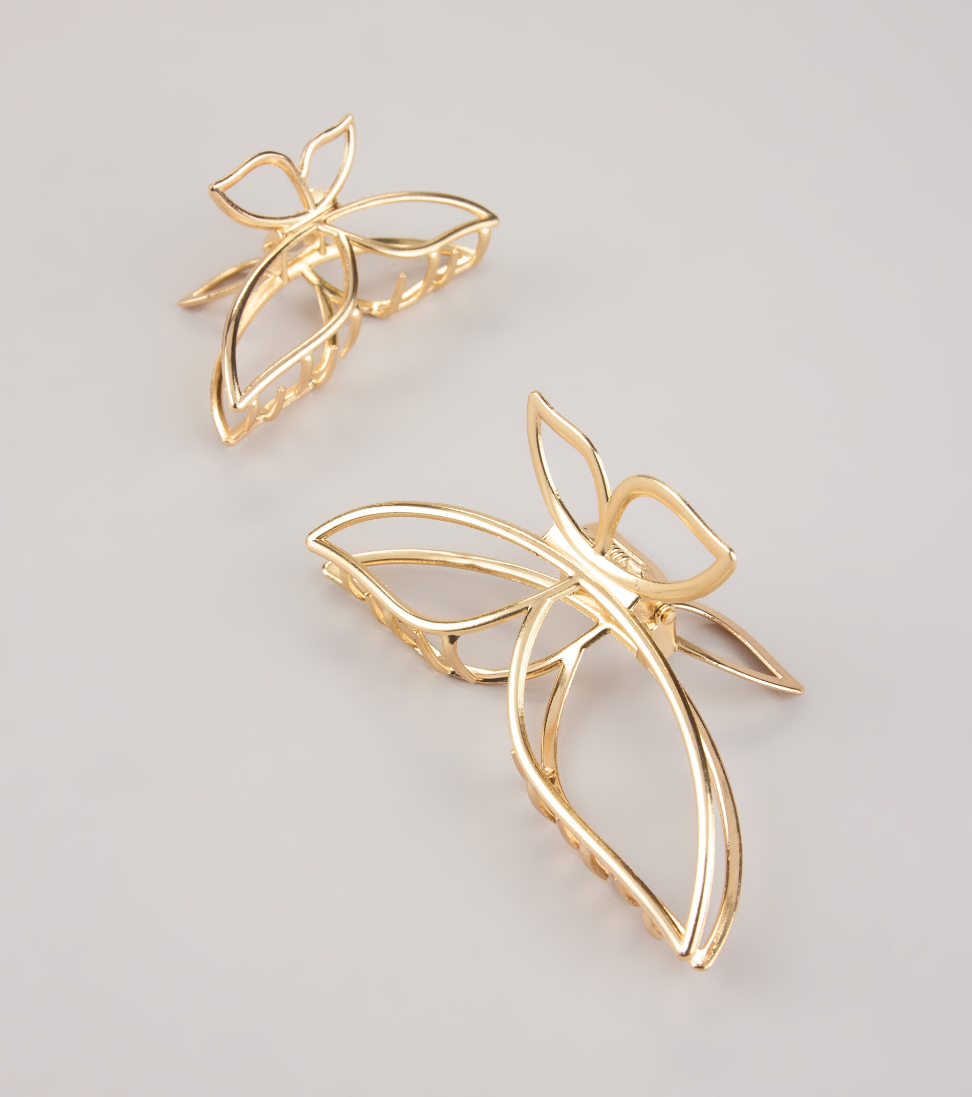 Catch the light (and some compliments) with this dreamy butterfly hair clip set. Designed in gleaming gold. each claw clip brings an airy. elegant vibe that instantly elevates messy buns or sleek updos.