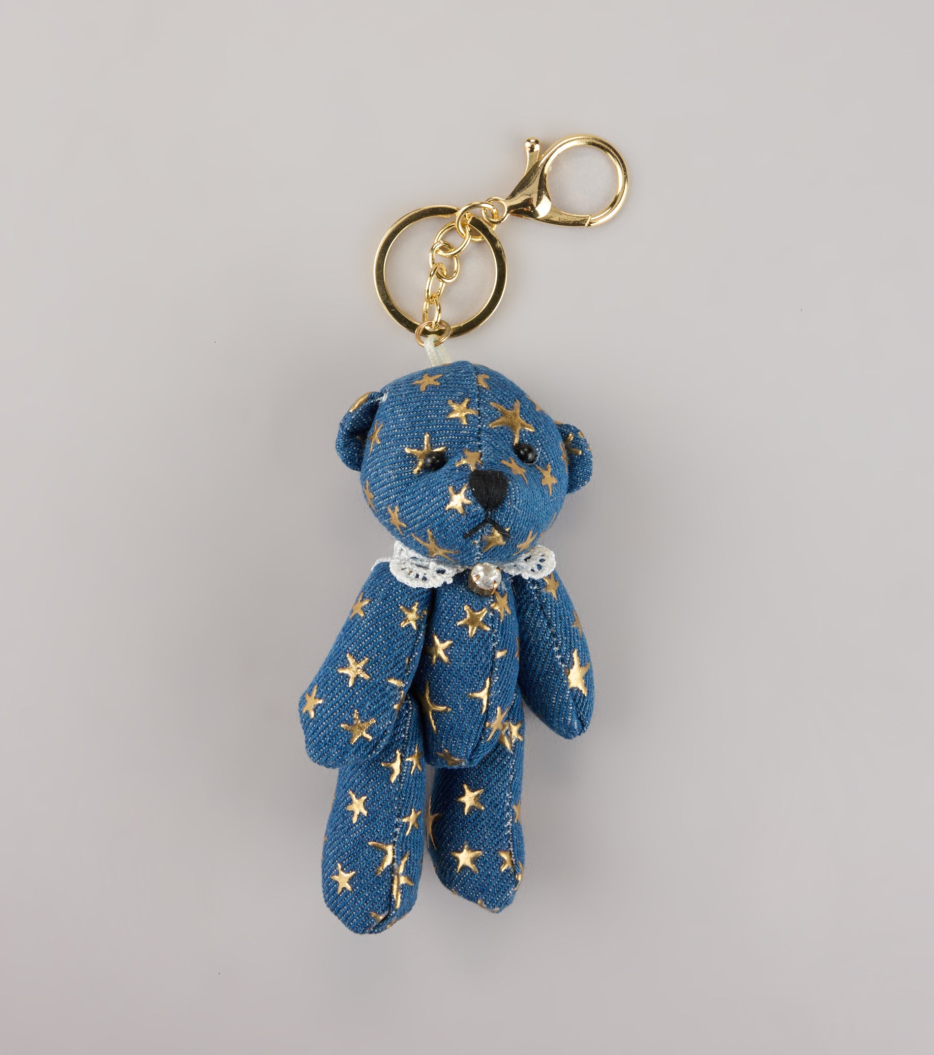 Your bag just found its new BFF. This star-print denim teddy keychain brings major cute-meets-cool energy with metallic star details that shimmer every time you move. Clip it onto your purse. keys. or backpack for instant charm.