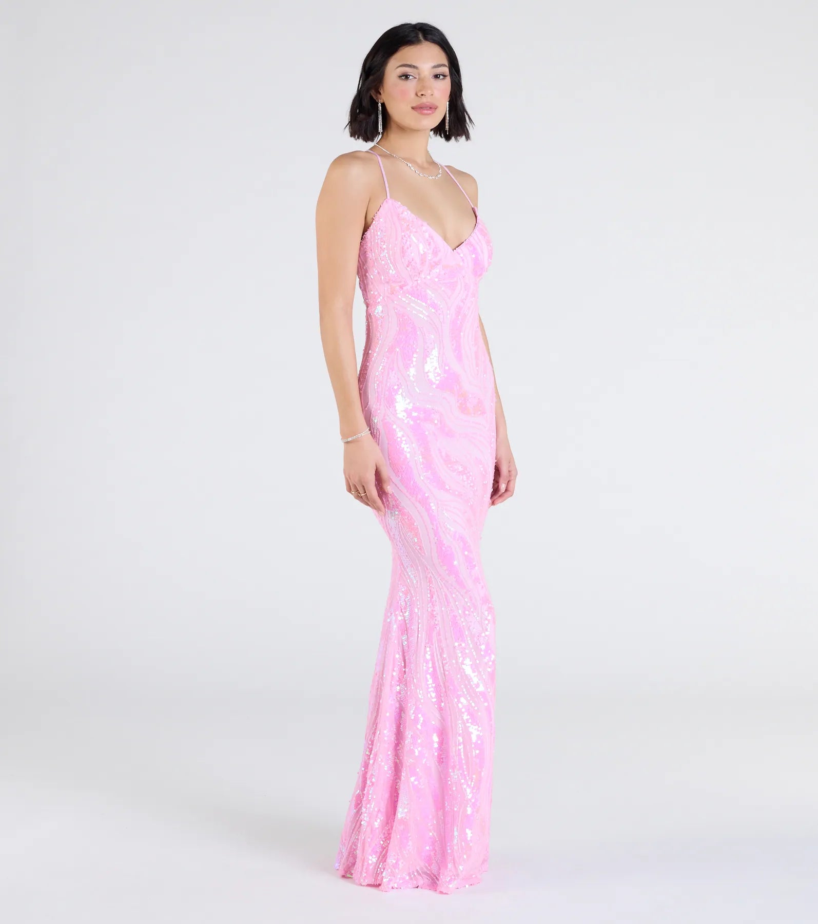 Acacia Iridescent Sequin Lace-Up Formal Dress
