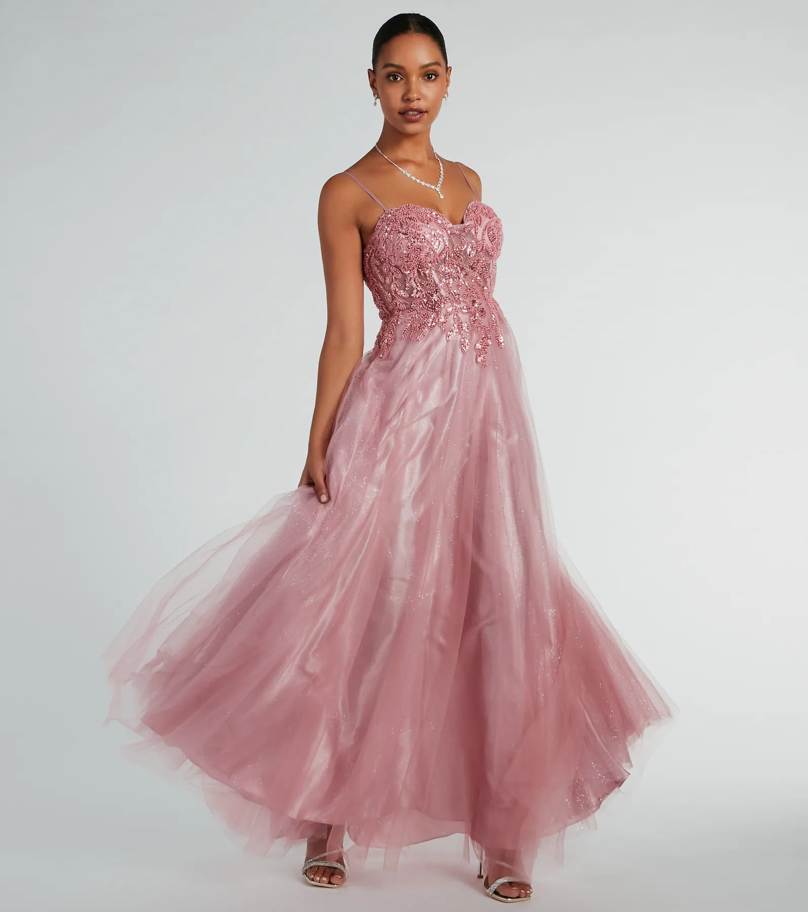 Aila Sweetheart Beaded A-Line Glitter Formal Dress