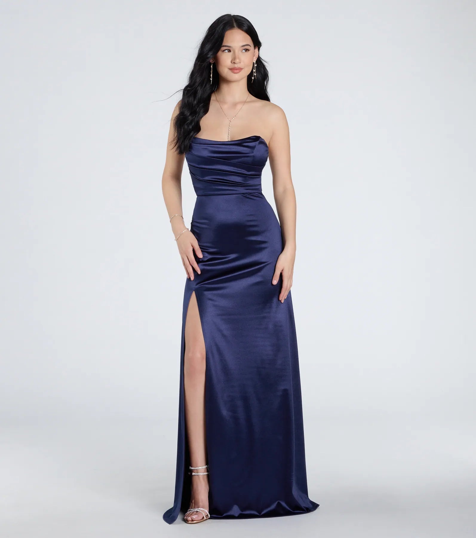 Step out looking breathtaking in the Alison satin formal dress designed with a sultry high slit for effortless movement and an A-line silhouette that flatters your curves.