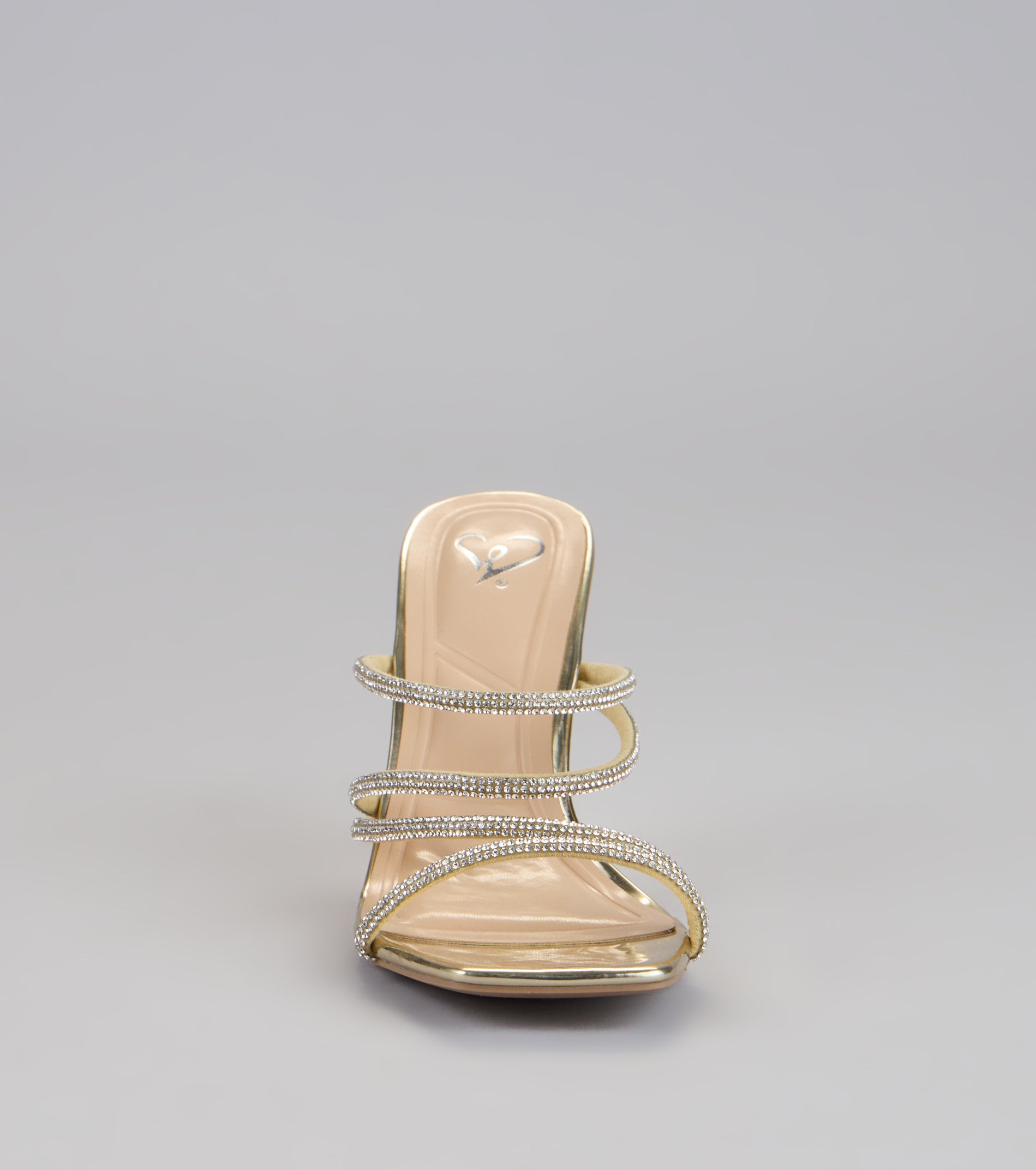 The heels that never miss. These stiletto mules bring effortless glam with rhinestone straps that catch every bit of light—and attention. Designed with a sculpted heel and sleek silhouette. they’re your not-so-secret weapon for any night worth dressing up for.