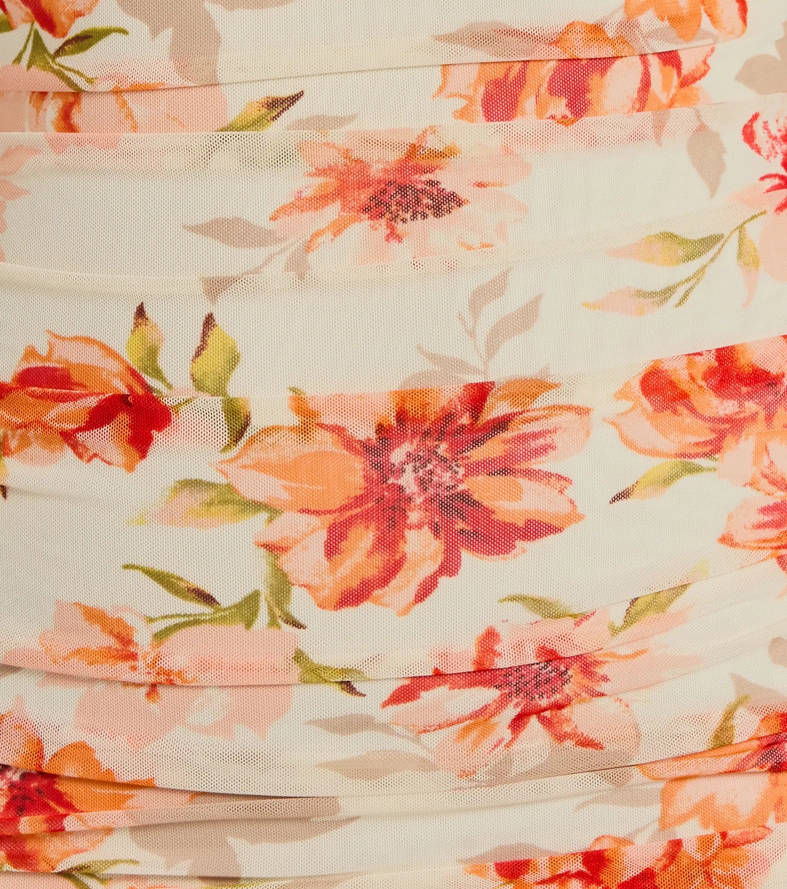 Blossom this season in this chic floral mini dress perfect for summer soirees! Featuring an off-the-shoulder sweetheart neckline and padded bra cups for support. this bodycon dress is accentuated by side ruched seams for a figure-flattering look and a mini-length hem. Complete the look with for shimmer!