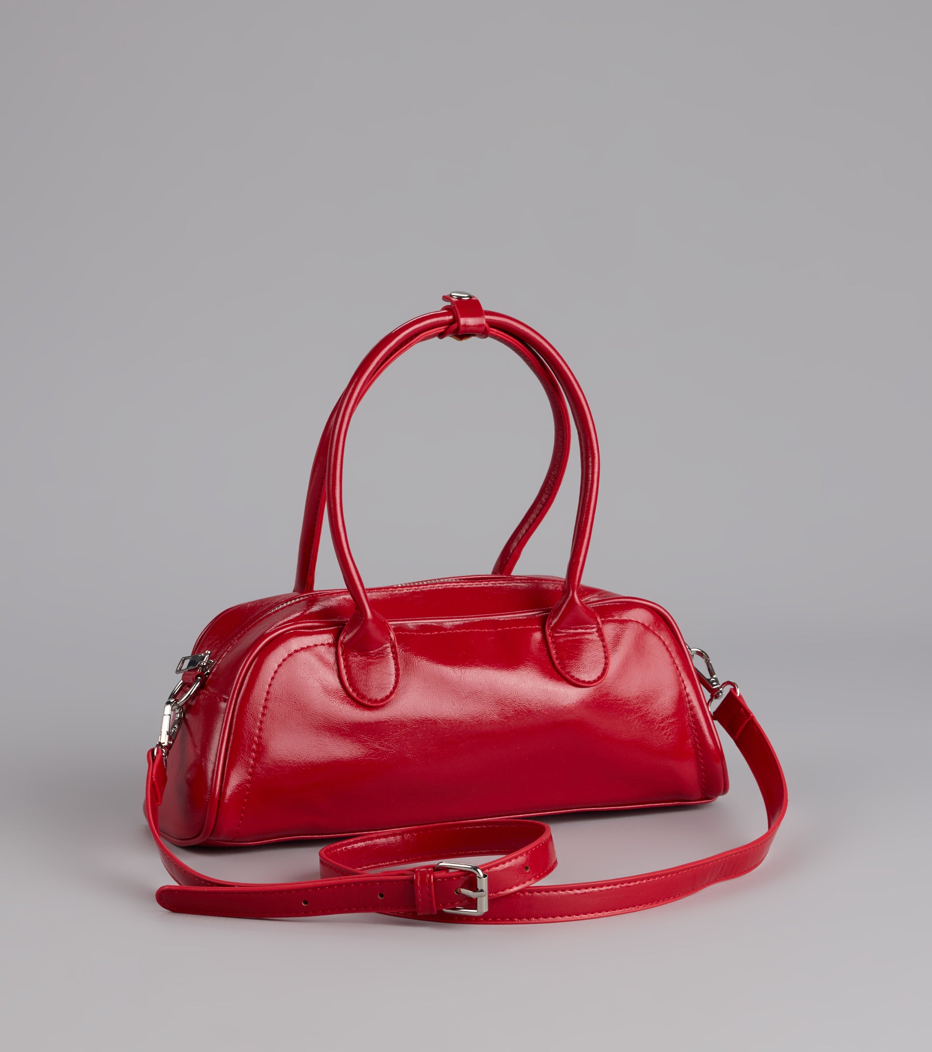 Bold and glossy—this patent shoulder bag is your new statement sidekick. The structured silhouette and fiery hue make it the perfect piece to spice up any look. from daytime errands to night out plans.