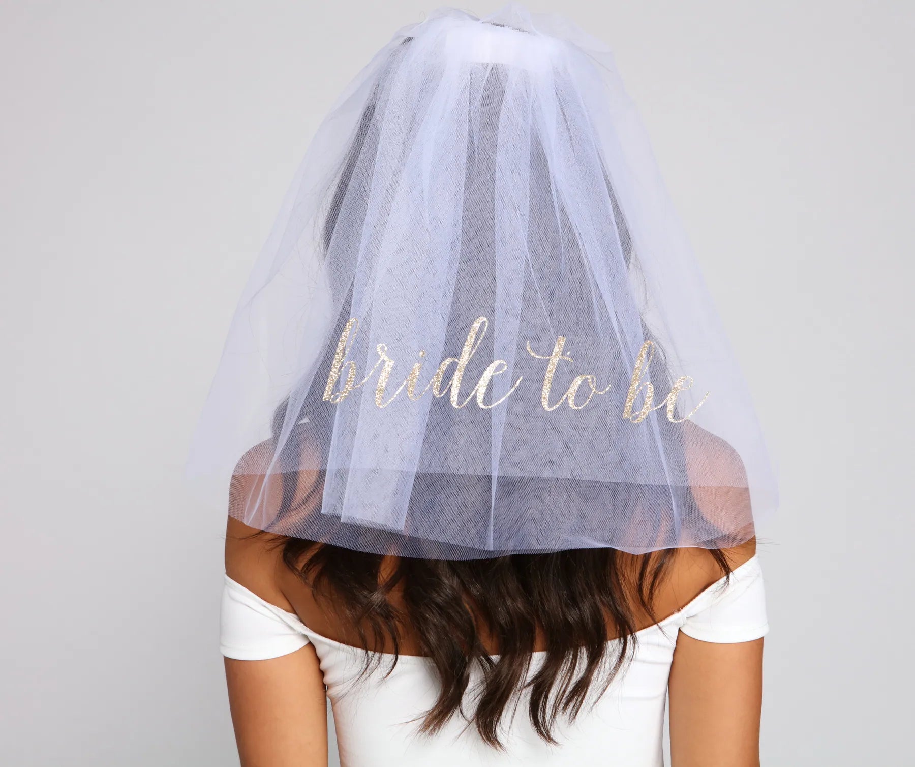 Celebrate the bride to be with a veil to match her glowing happiness! The veil features a headband. layers of sheer tulle. and glitter script that reads: Bride To Be. Complete look with a and heels for a bridal shower.?