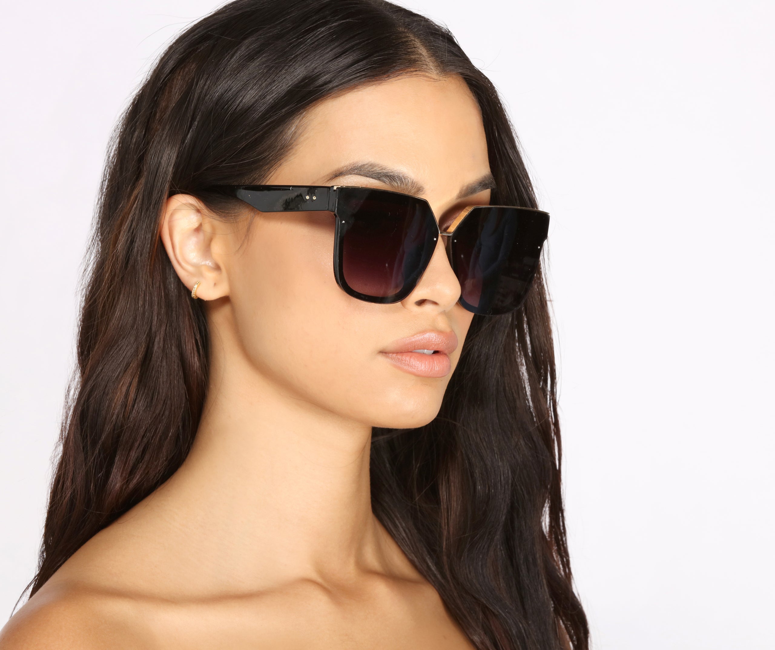 Throw some shade in chic sunglasses that bring the drama. The sunglasses feature an oversized cat-eye frame and a flat top with metal trim. Complete your look with fab girl!?