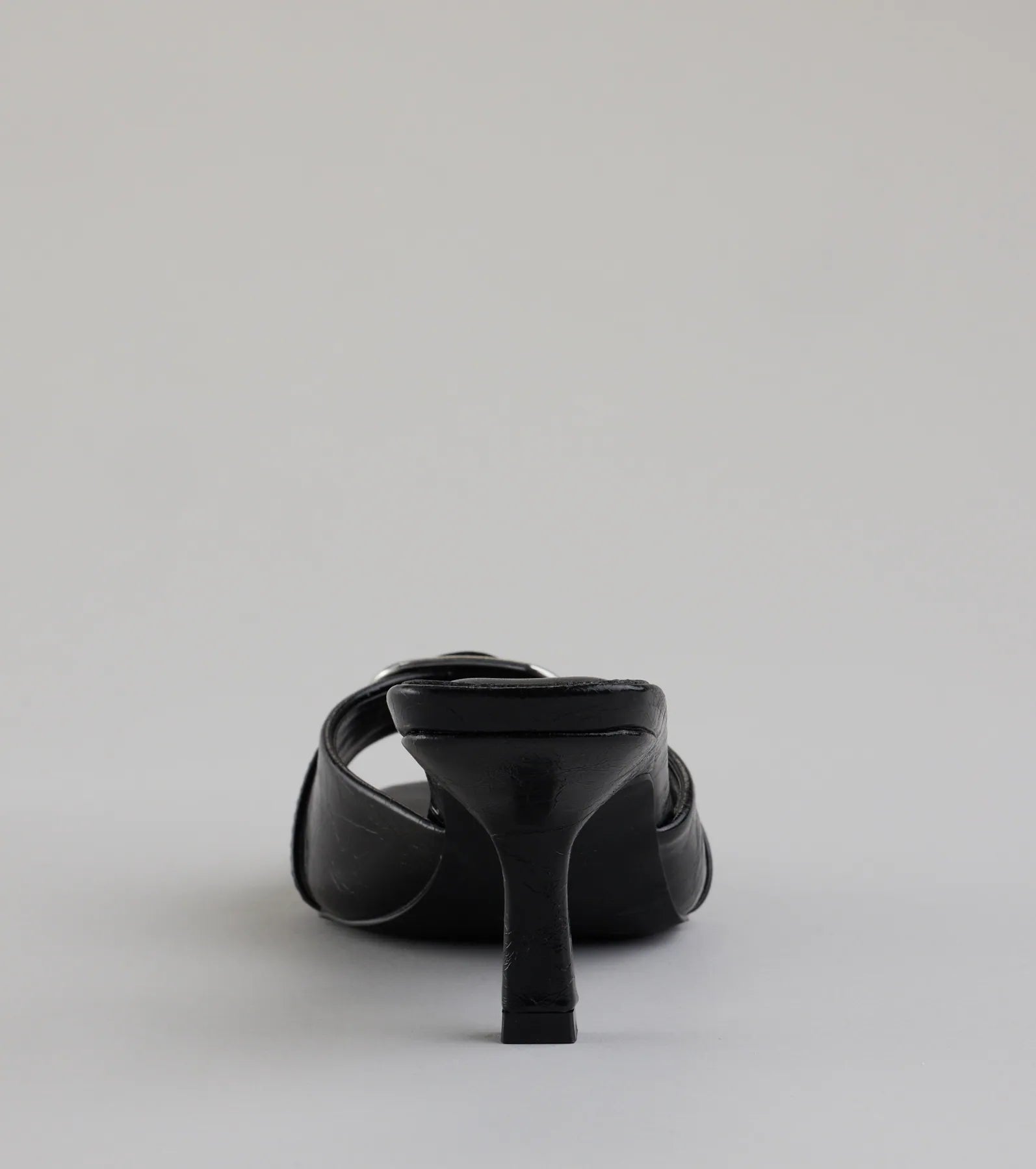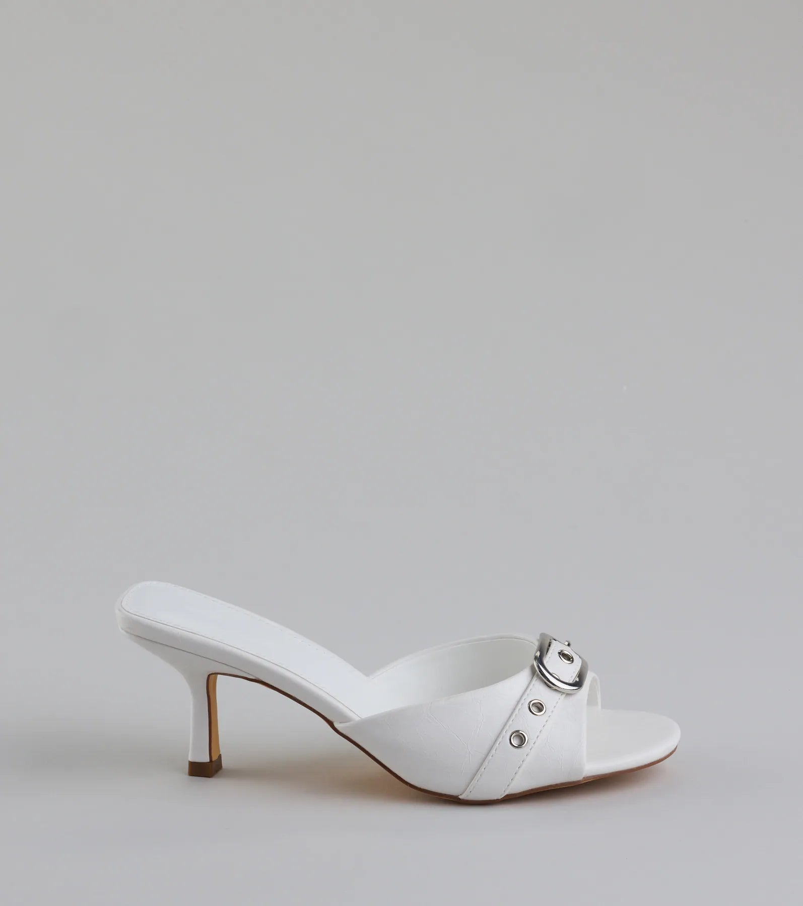 Let these stiletto mules take you from brunch to cocktail hour! With a trendy buckle accent and sleek square toe. these heels are perfect for elevating any look.