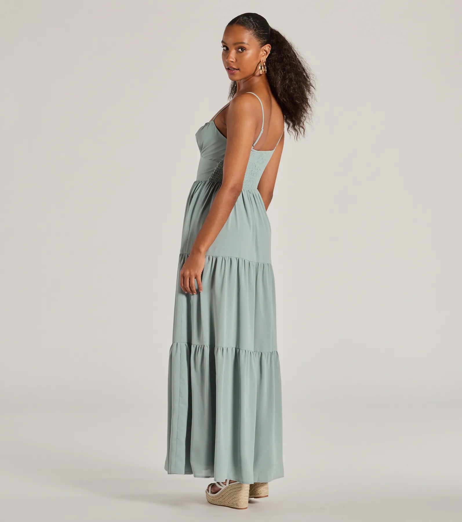 - Flowy ruffled silhouette