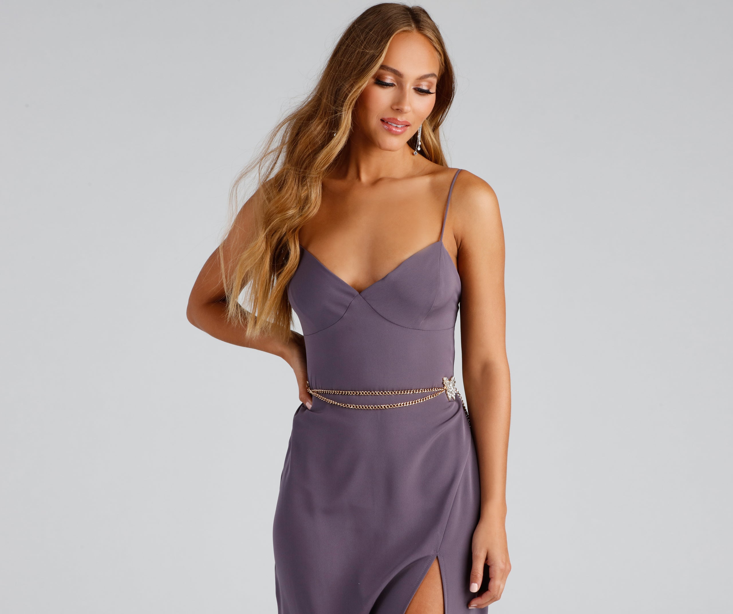 Accessorize your fave dress with this charming glam embellished belt. The chain-link belt features a double-layered design with a butterfly accent with all-over diamond-shaped rhinestones. Style this belt with dainty .