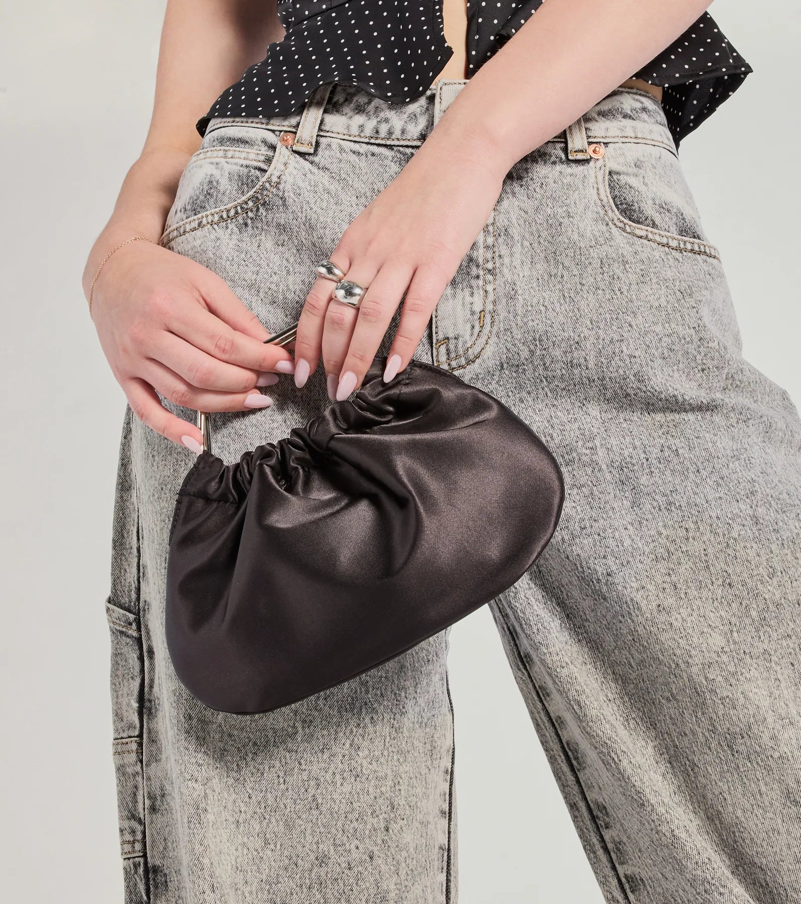 Carry your must-haves in this chic essential satin mini clutch bag designed in a mini silhouette with a detachable chain strap for versatile styling! Pair with a cocktail dress.