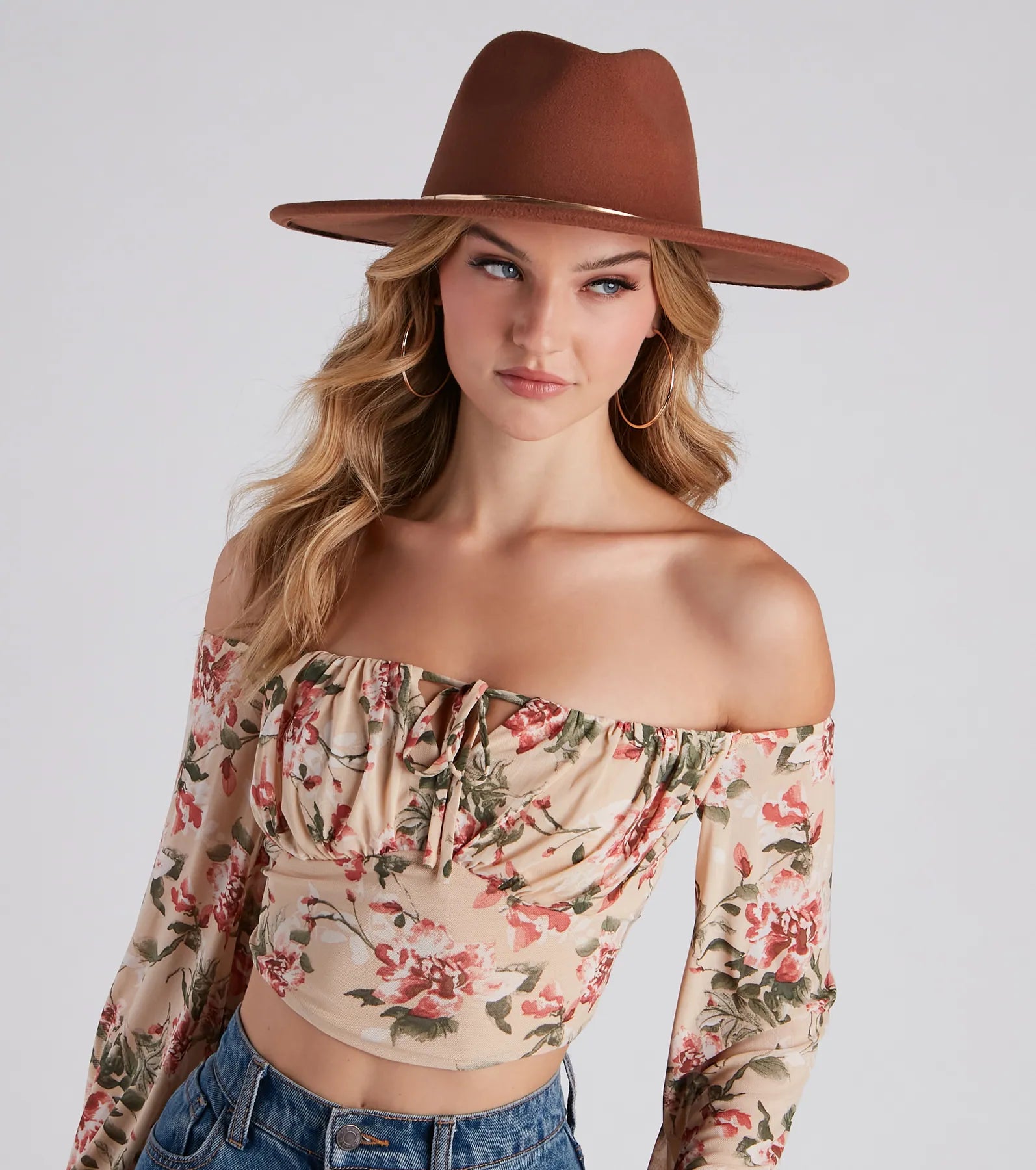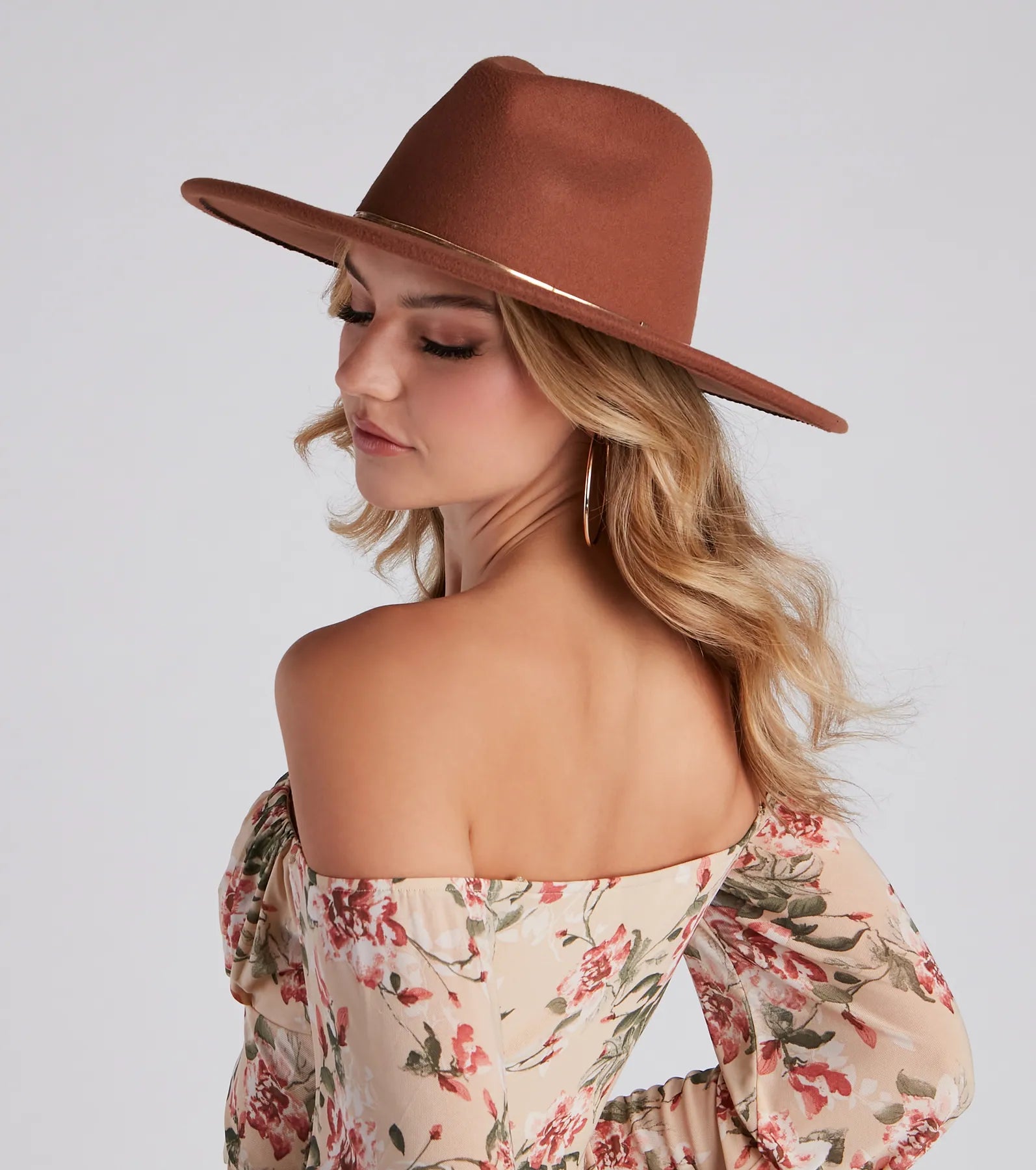 - Wide flat brim