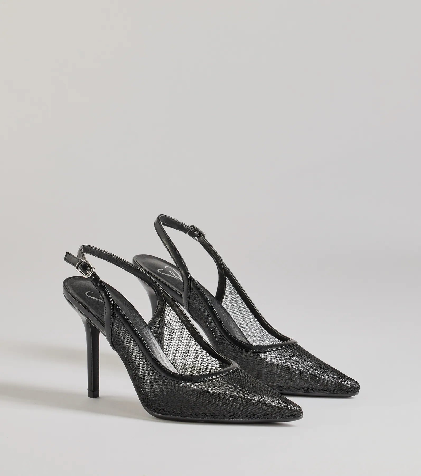 These chic slingback stiletto pumps give every outfit a modern flair with a sheer mesh design. Style with cute socks.